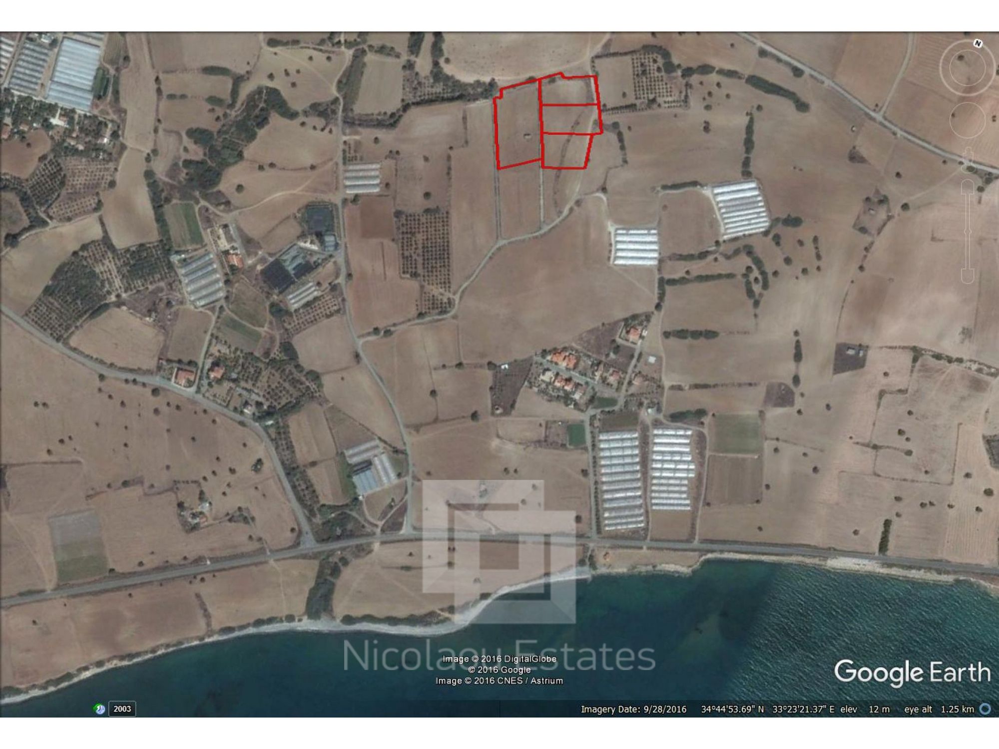 The four pieces of land currently fall in the agricultural zone Γ3 that has a building density of 10% but they are adjacent to tourist zone T3B that has a building density of 30% so when the planning authorities move the zones which they often do, the land has a good possibility to fall into that category doubling the price. The land has already been recommended to the authorities to be put in to zone T3B.