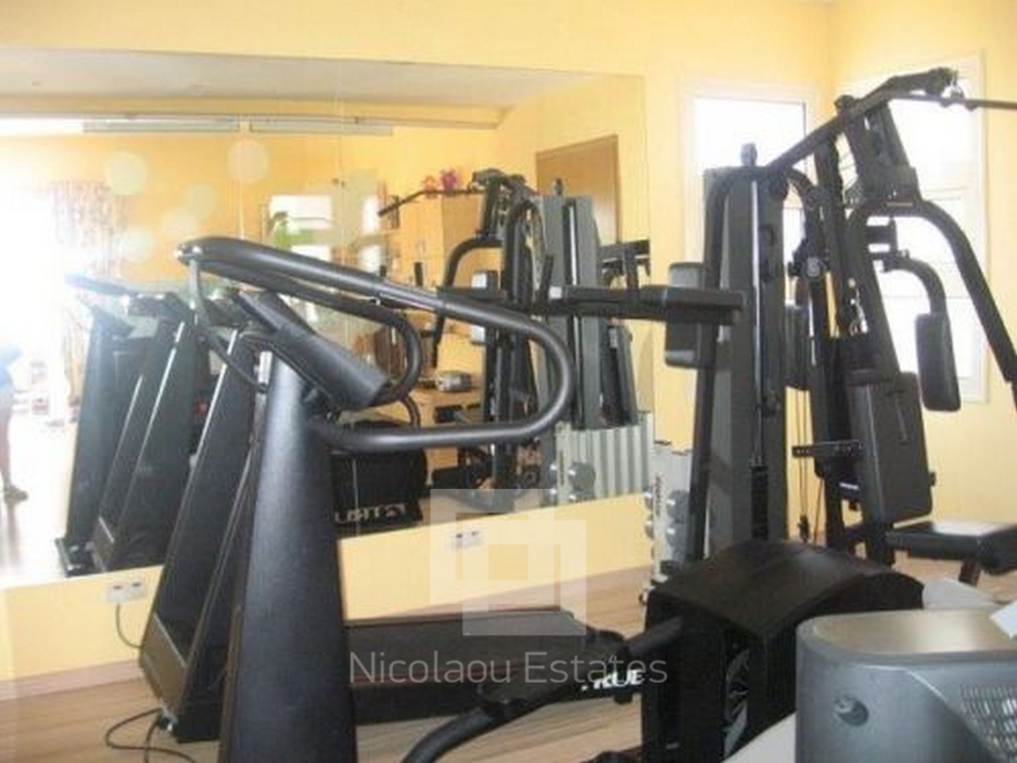 On the ground floor : entrance hall with dressing room , living room, TV room with library and fireplace, dining room, kitchen , laundry room , office, children's playroom , gym , spa tub.