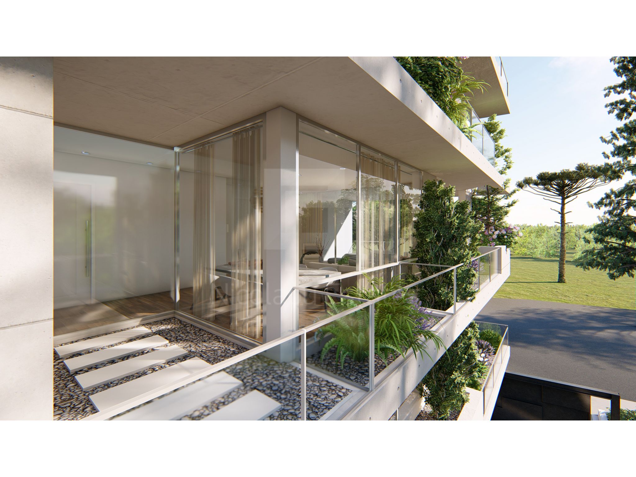 Αυτό το διαμέρισμα βρίσκεται στον πρώτο όροφο και αποτελείται από το καθιστικό με την τραπεζαρία και ενιαία κουζίνα, δύο υπνοδωμάτια, ένα μπάνιο και μία τουαλέτα επισκεπτών. Διαθέτει επίσης βεράντα 19 τ.μ., ένα χώρο στάθμευσης και αποθήκη.