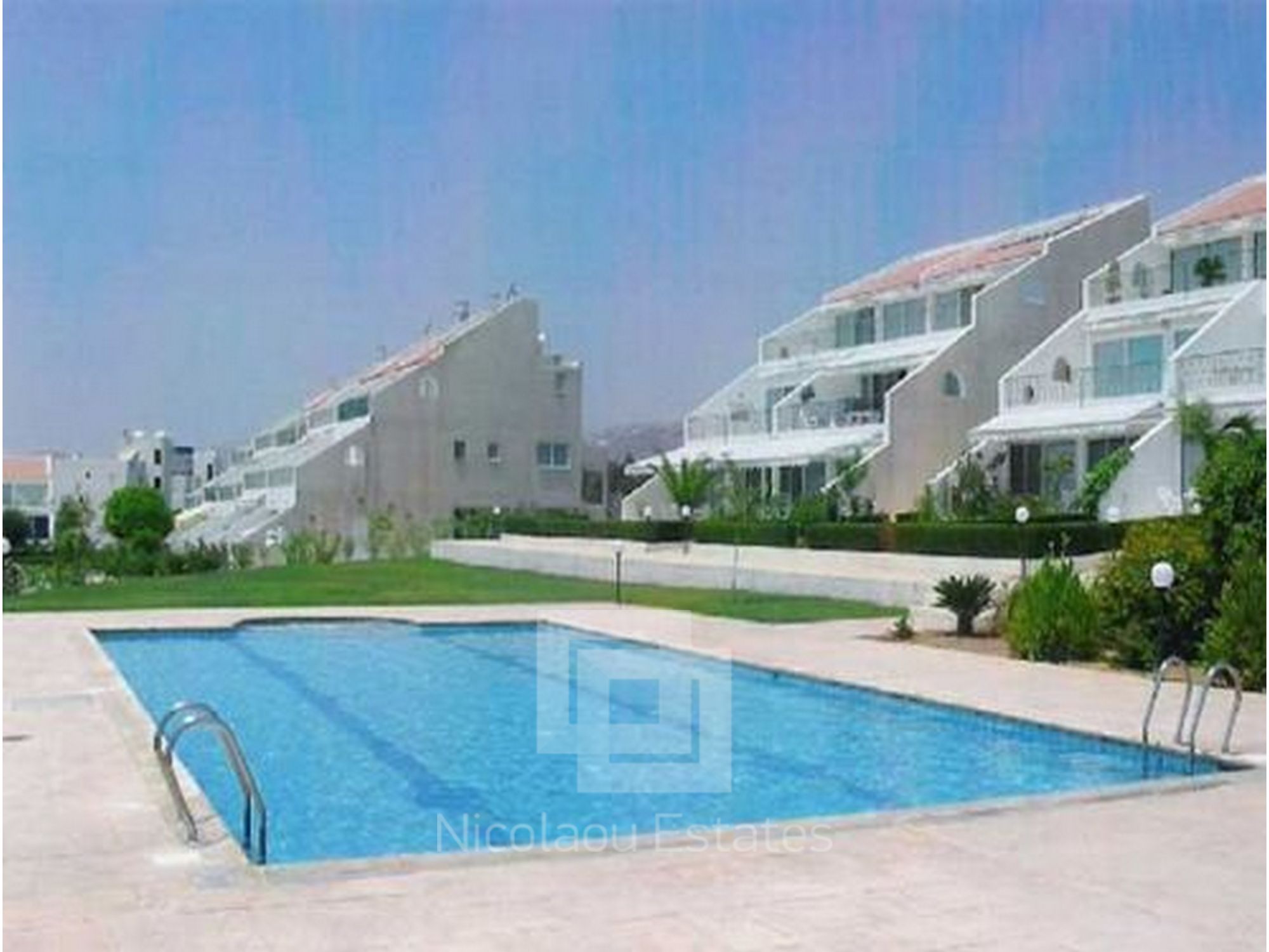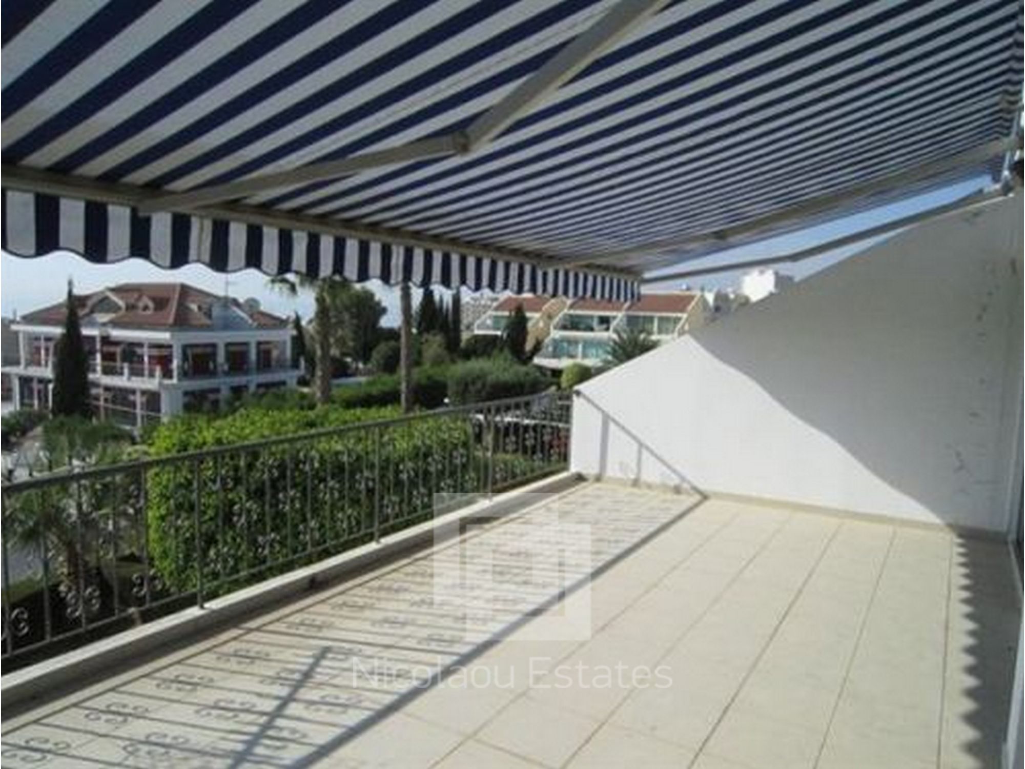 Located close to the St Raphael Hotel, Limassol, Cyprus. A 2 bed apartment, some sea views, 1st floor, 2 floors only, no lift, huge 25m2 veranda with electric awning, garage, open plan, totally renovated, brand new kitchen with black granite worktops, master ensuite with high tech jacuzzi bath + common jazuzzi bath, deeds, 100m from sea, 2 communal pools, beautifully landscaped green garden. PVC double secured door, new double glazed windows.