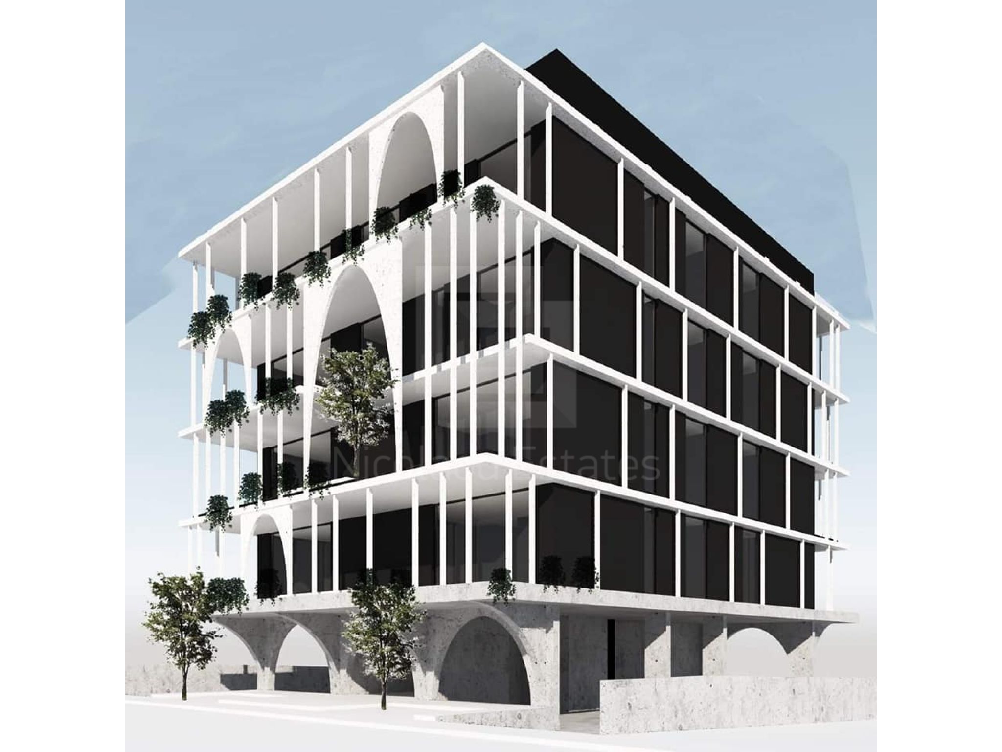 Η τετραώροφη οικοδομή αποτελείται από 4 διαμερίσματα 1ος υπνοδωματίου, 4 διαμερίσματα 2ο υπνοδωματίων και 2 διαμερίσματα 3ων υπνοδωματίων. Στο ισόγειο χώρο υπάρχει λειτουργικά διαμορφωμένος χώρος στάθμευσης για κάθε διαμέρισμα. Το κάθε διαμέρισμα έχει άνετο σαλόνι με τραπεζαρία, κουζίνα, ευρύχωρο υπνοδωμάτιο, μεγάλες βεράντες και μπάνια.
