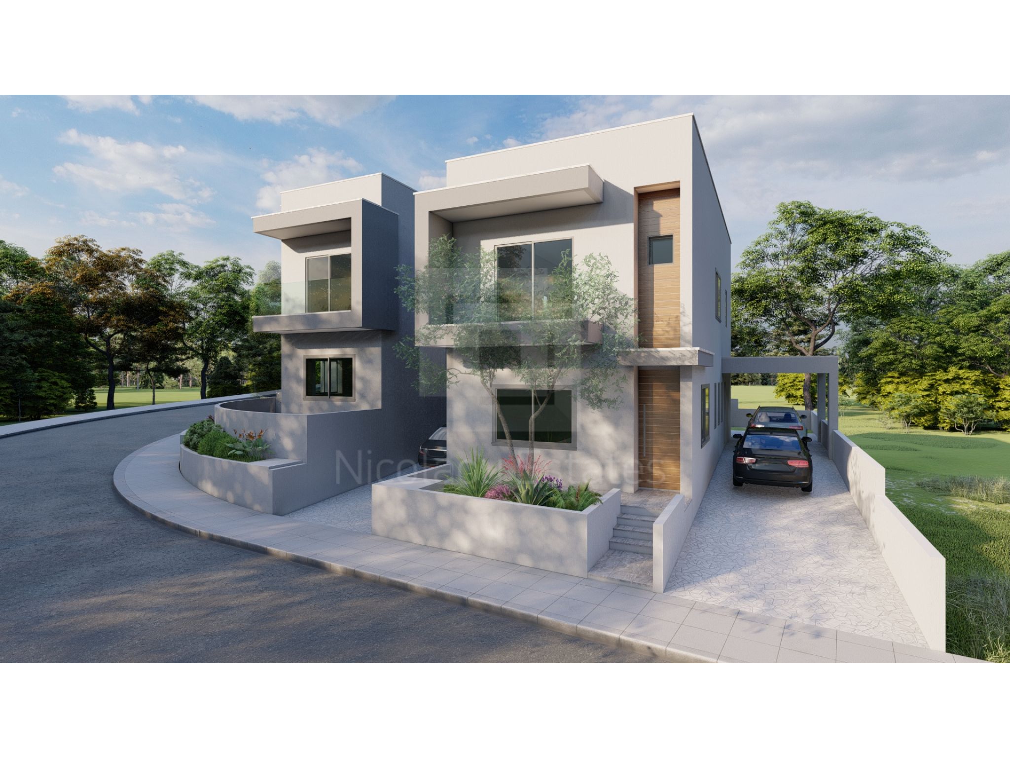 Modern homes in Ypsoupoli in a corner plot