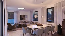 A contemporary designed house with a beautiful garden, double garage and terraces. On the ground floor it has a spacious open plan living room, dining room, family sitting area with a modern kitchen all with a view to the garden, and a guest WC. On the first floor there is a master bedroom with en-suite bathroom and three bedrooms that share a common bathroom.