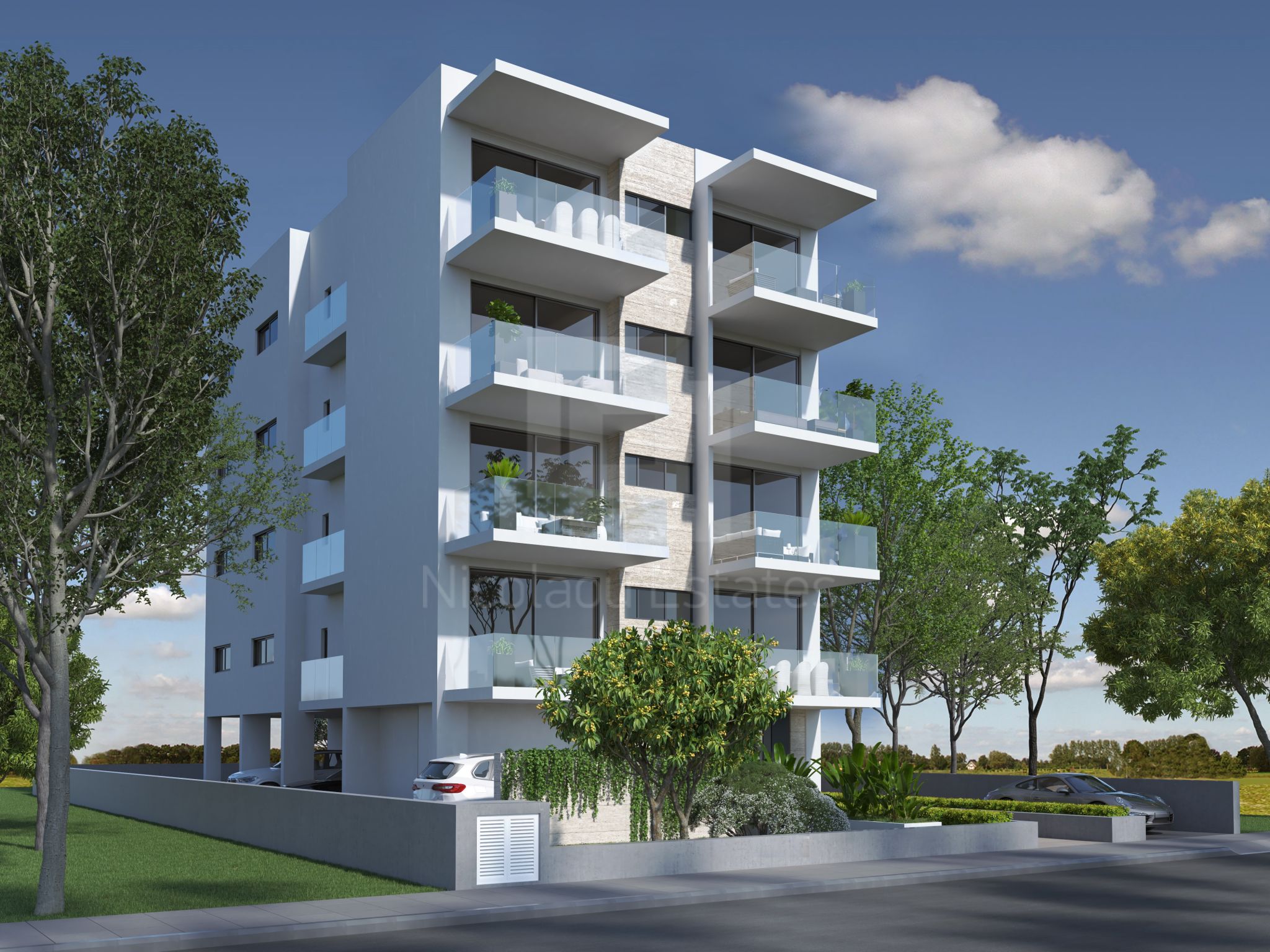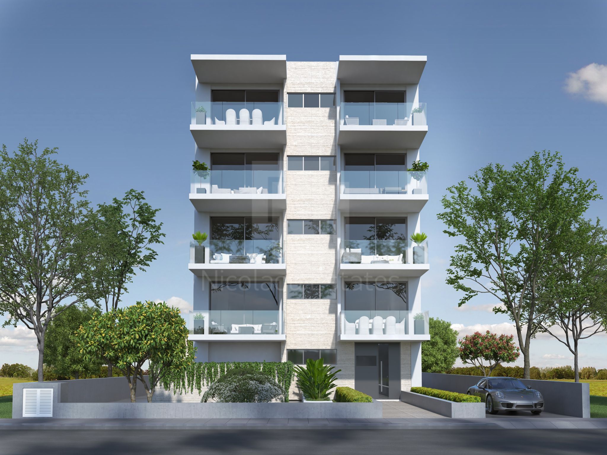 The modern lines of the building and the carefully designed apartments, offer comfort and functionality, whereas the high quality standards in construction and materials raise the standard of living.