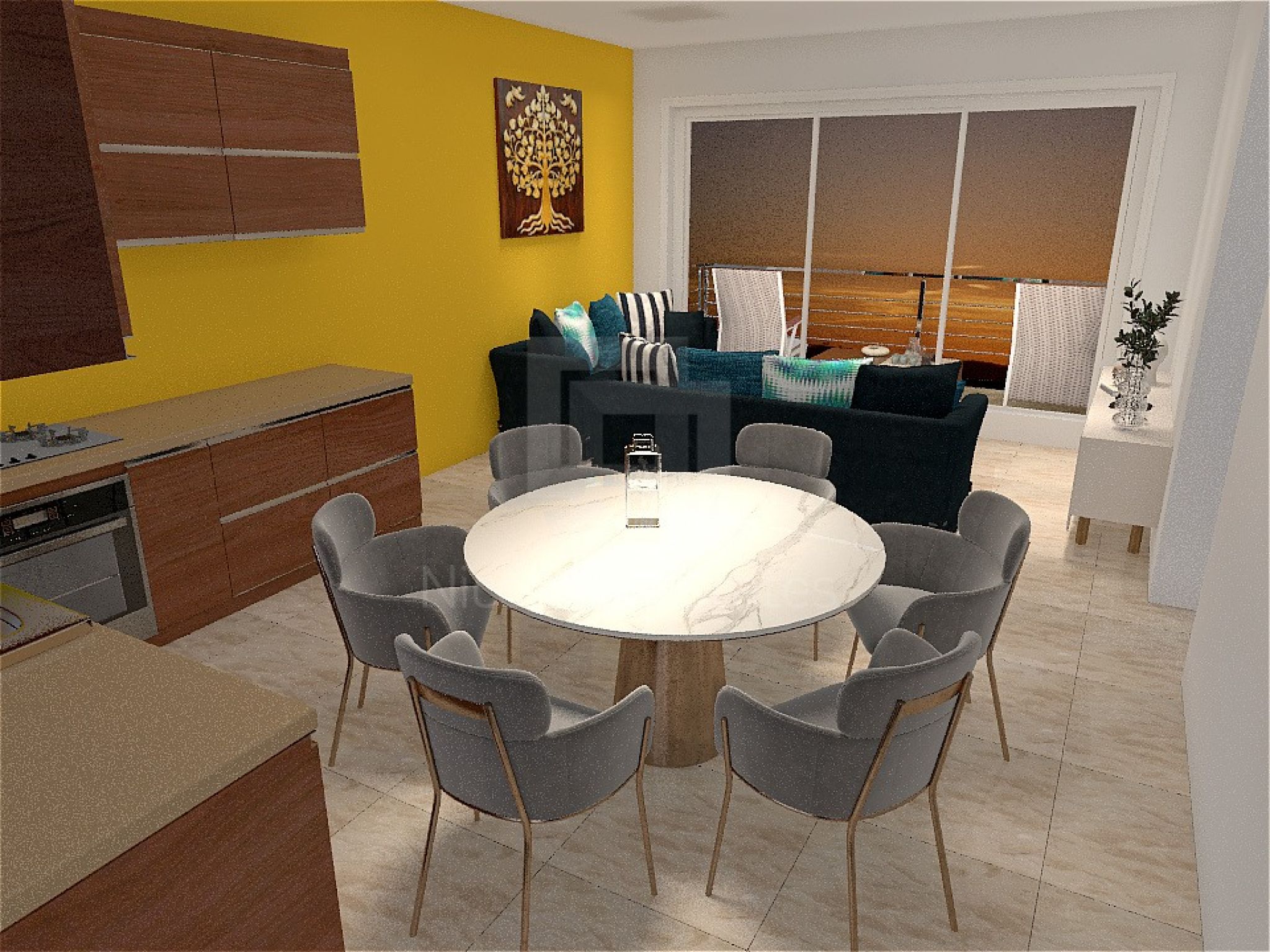 Αυτό το διαμέρισμα βρίσκεται στον πρώτο όροφο και αποτελείται από το σαλόνι με την τραπεζαρία και ενιαία κουζίνα, δύο υπνοδωμάτια και ένα μπάνιο. Διαθέτει επίσης ένα καλυμμένο χώρο στάθμευσης και μια αποθήκη στο ισόγειο.