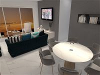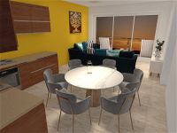 This apartment is situated on the first floor and consists of a living room with dining area and open plan kitchen, two bedrooms and one bathroom. It comes with covered parking space and a storage on the ground floor.