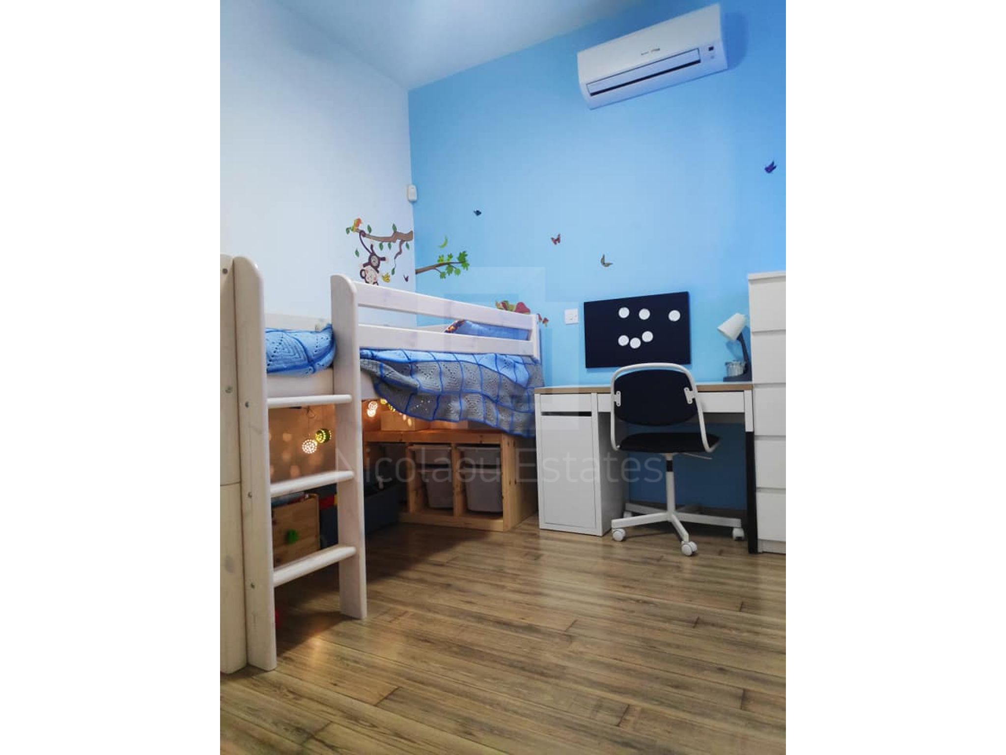 - Inverter air conditioners in all areas, ceiling fans and parquet in the bedrooms.