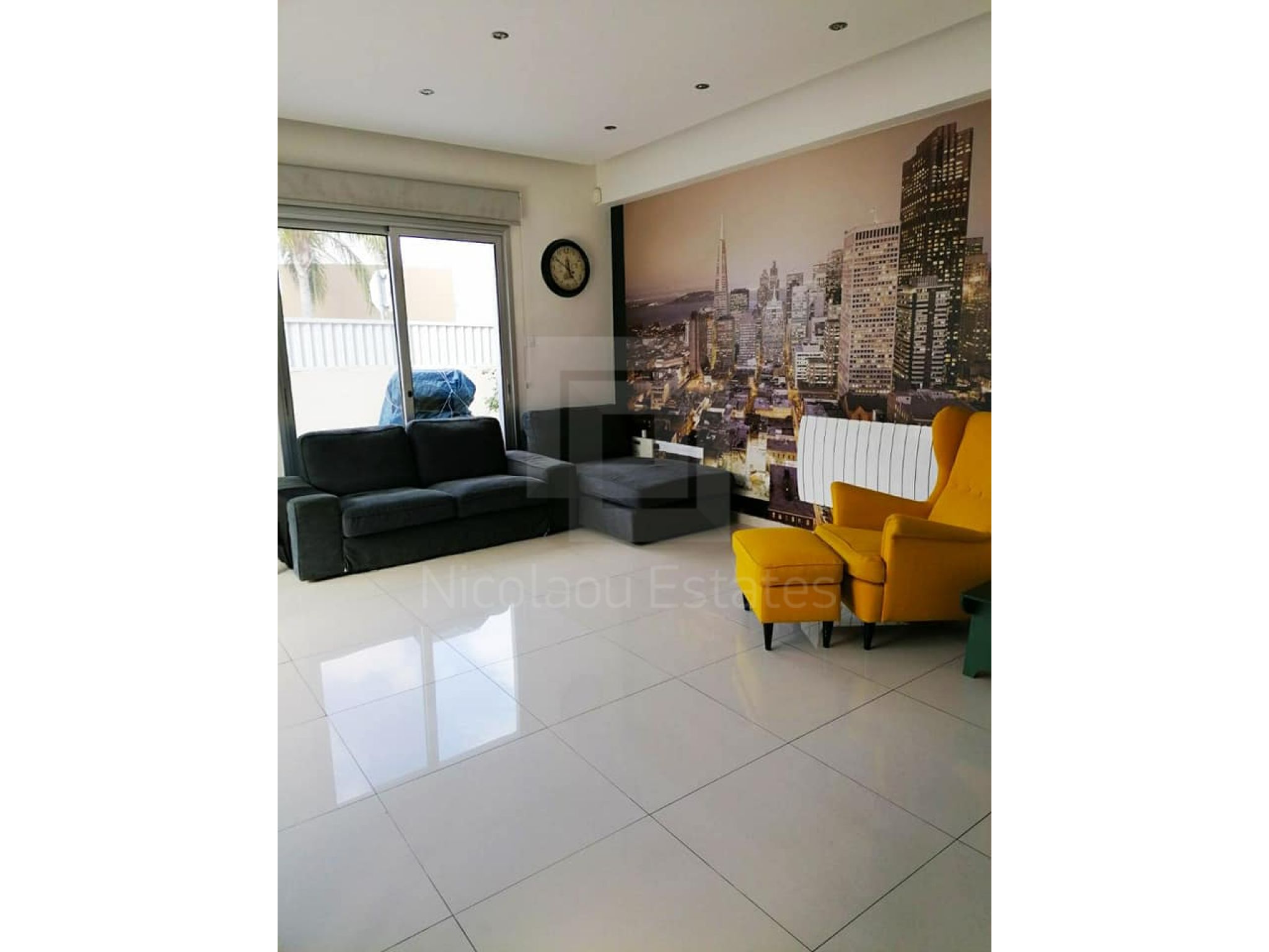Modern, corner and ground floor 3-bedroom apartment for sale in Latsia. The property is located in a quiet area, close to GSP and Nuevo campo football fields. It's in a great location, close to parks and all services with easy access to the highway.
