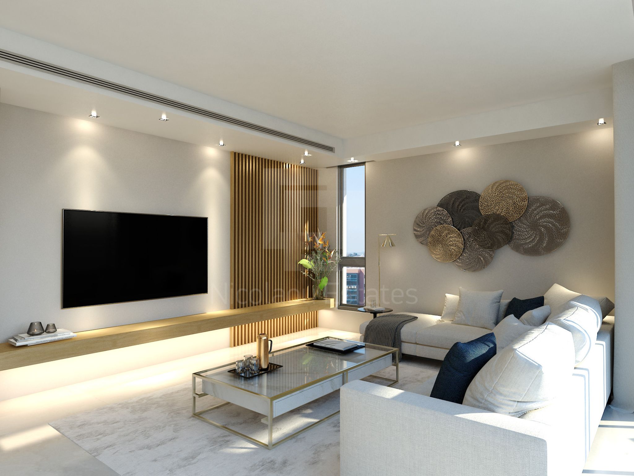 - Marble flooring or semi – solid parquet in living and dining areas