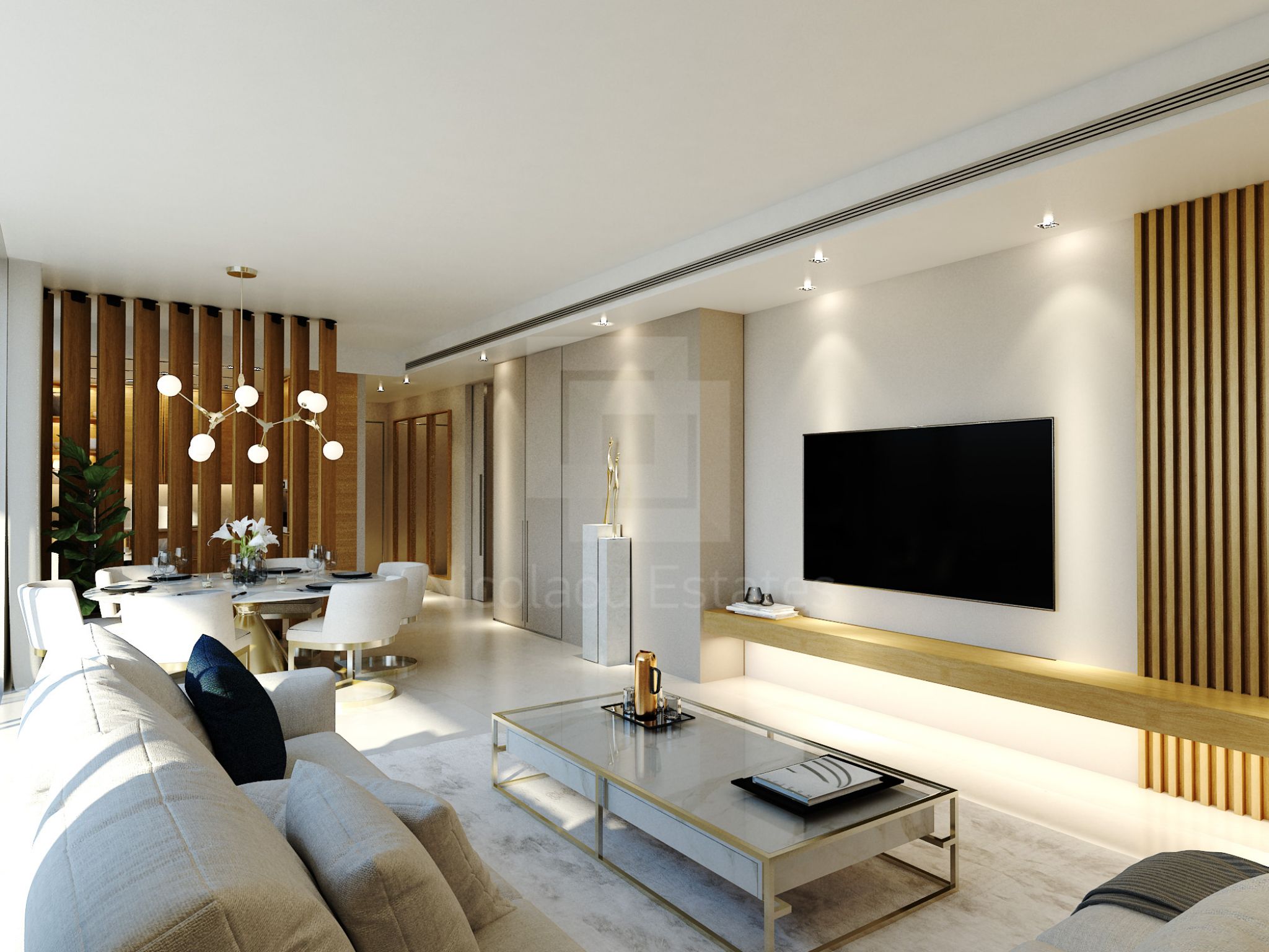 - Μαρμάρινο δάπεδο ή ημι-συμπαγές παρκέ σε καθιστικό και τραπεζαρία