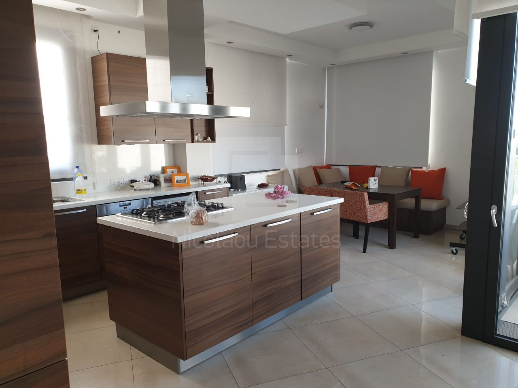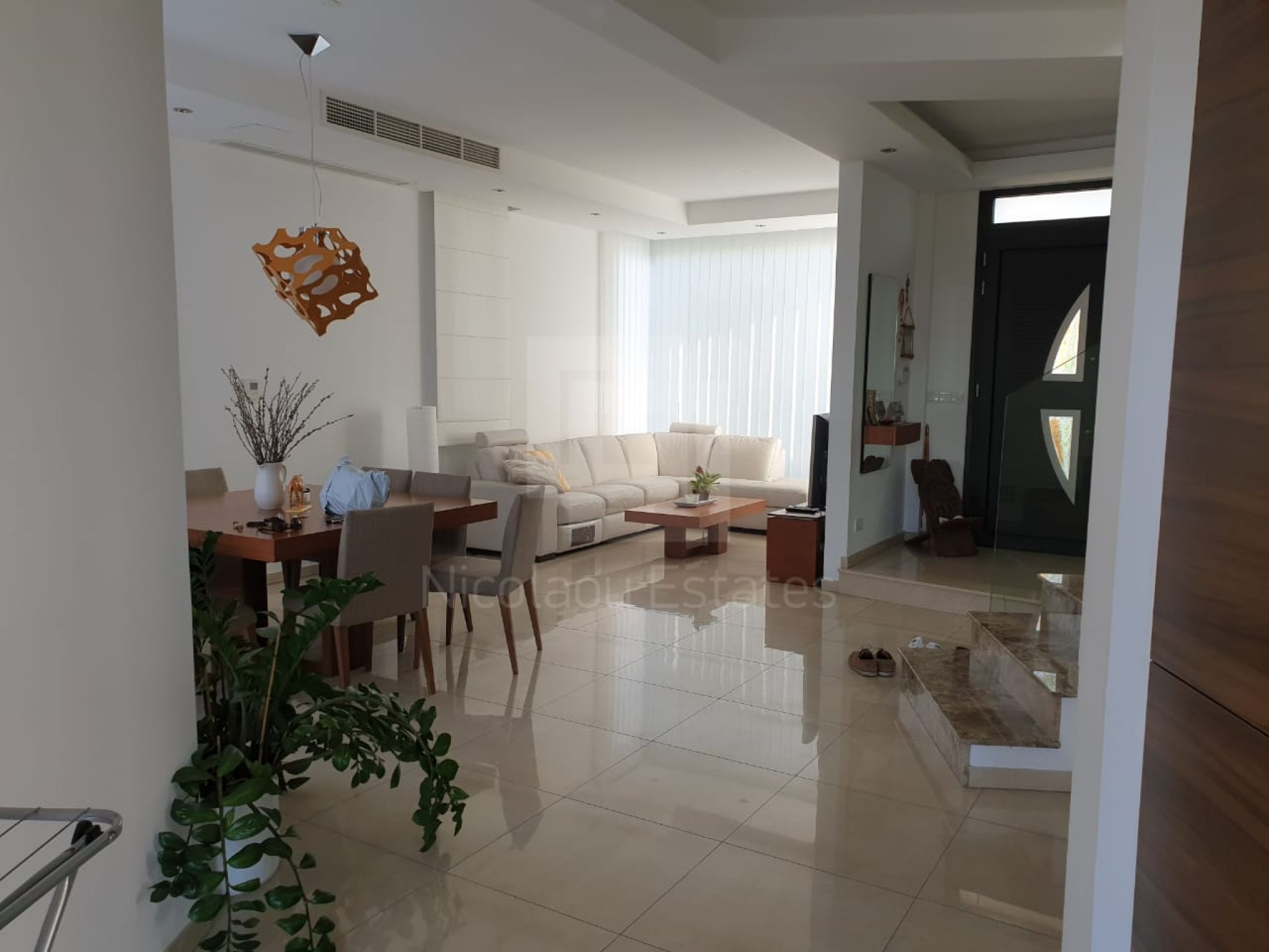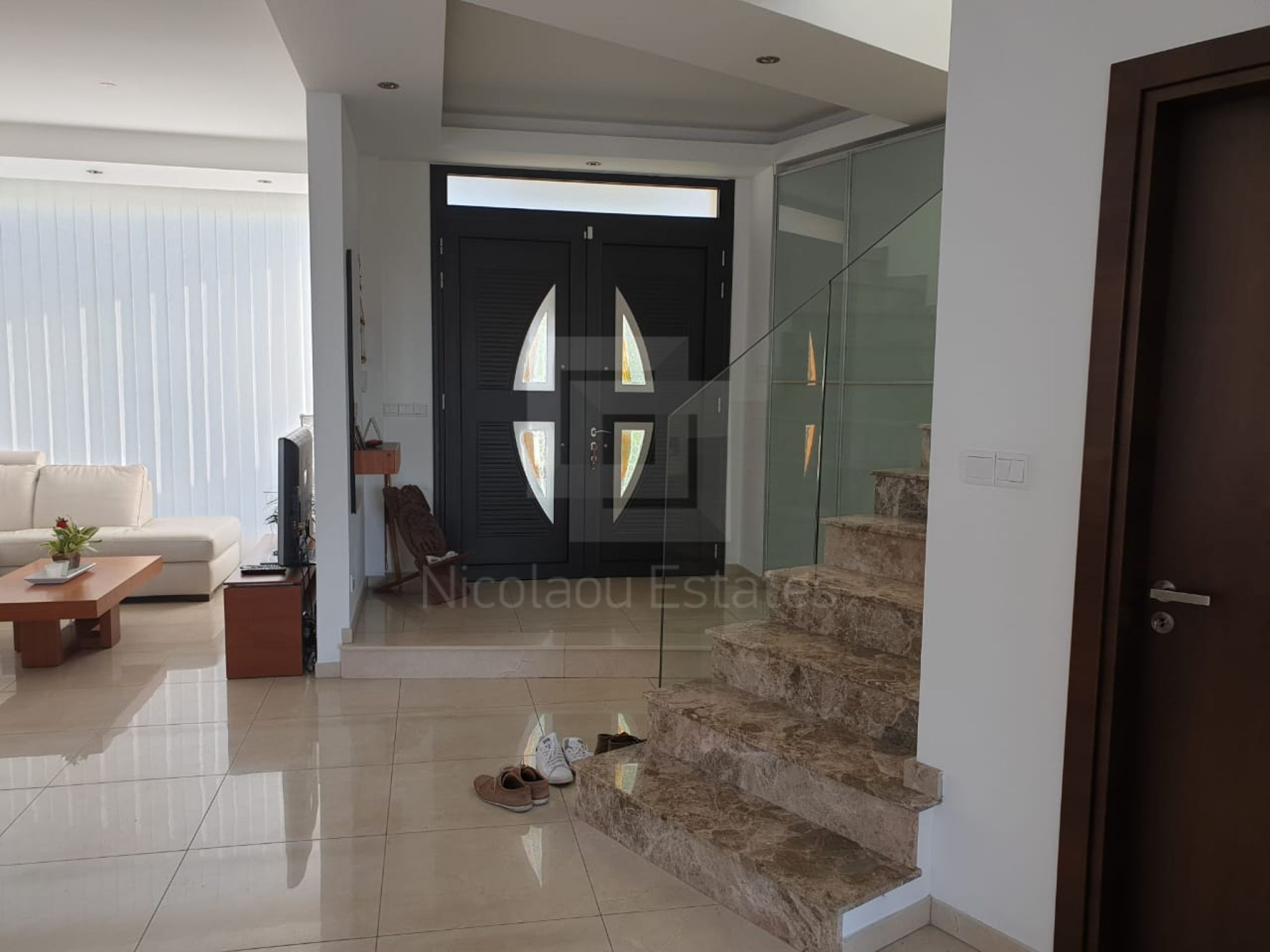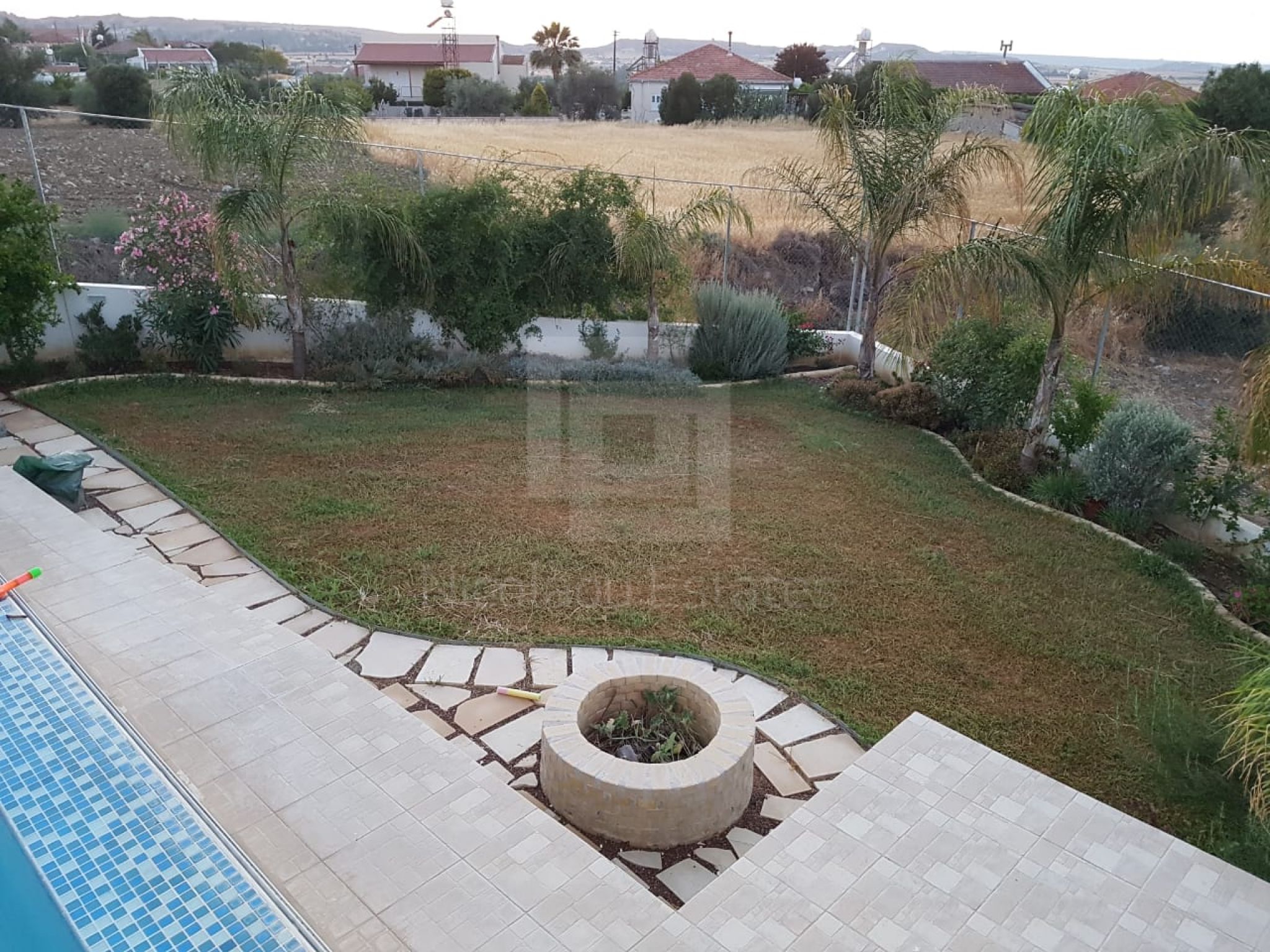 It's build on a hill with spectacular views of Nicosia and the Politiko Russian church in the distance. Totally detached. Automatic irrigation, water flow pool, Central Daikin AC, underfloor heating. Mielle kitchen, including all electrical appliances (coffee machine etc) and furniture/cupboards as well. Thick soundproof and heat proof aluminium.