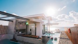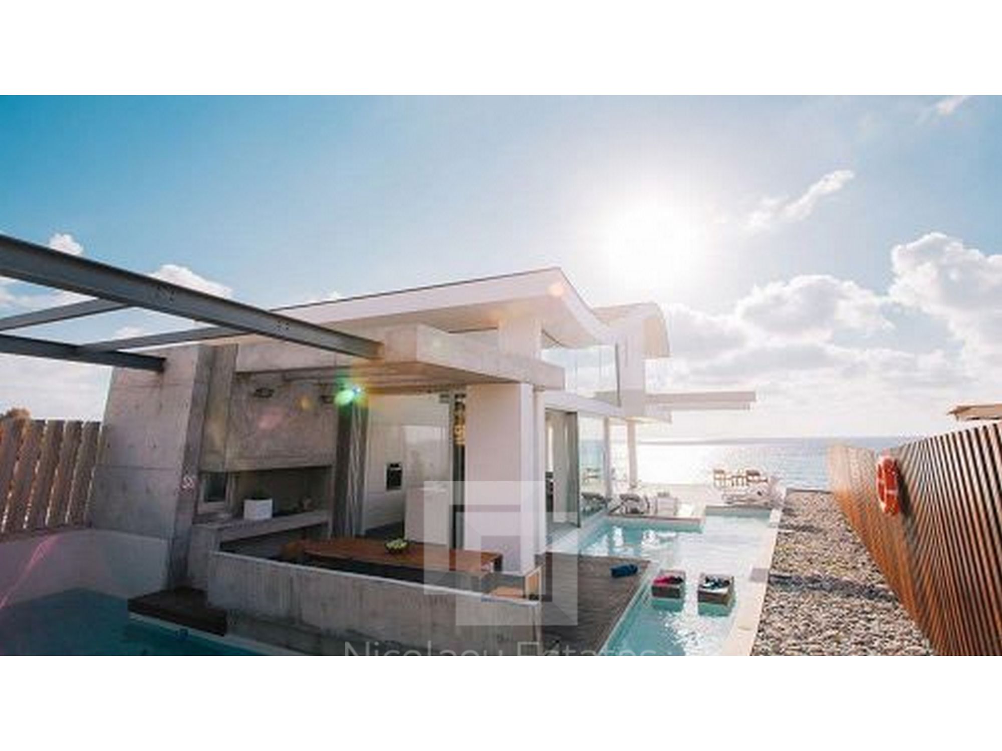 This is an amazing modern house, right on the beautiful beach in Pomos area, in Pafos.