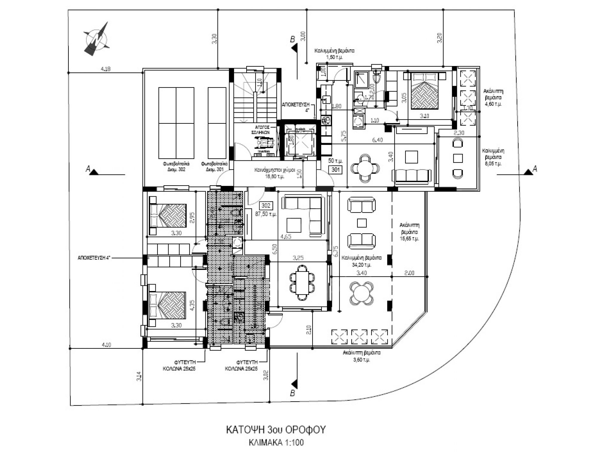 - Καλυμμένη βεράντα 34,20 τ.μ. / Ακάλυπτη βεράντα 19,25 τ.μ.