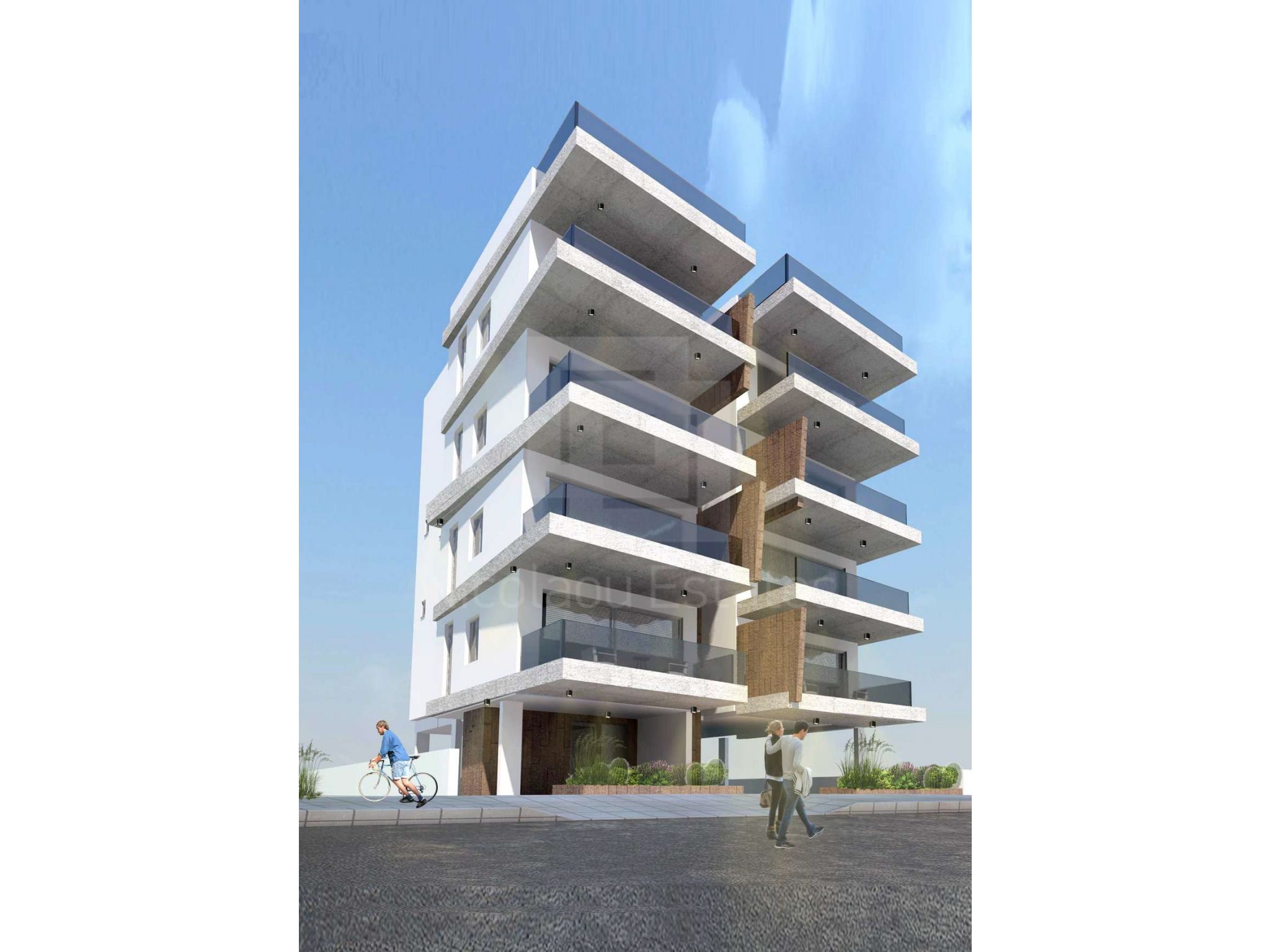 This brand new project is under construction and is located in Engomi area. The building has four floors and eight apartments of two bedrooms. This apartment is build on the third floor and consists of a living room with dining area and open plan kitchen, two bedrooms and two bathrooms.