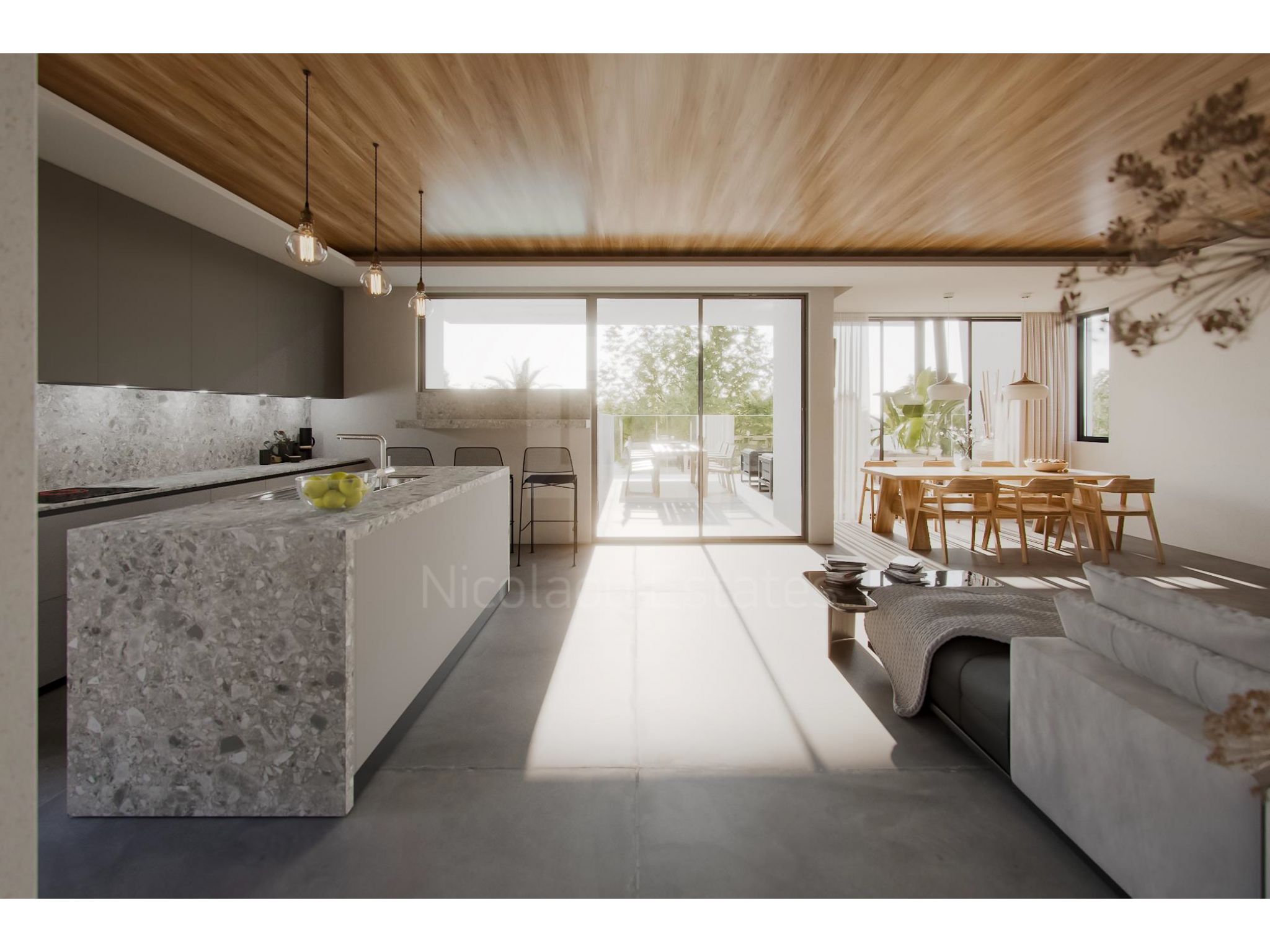 This apartment is build on the first floor and consists of a living room with dining area and open plan kitchen, two bedrooms, two bathrooms (master bedroom en-suite) and a guest wc.