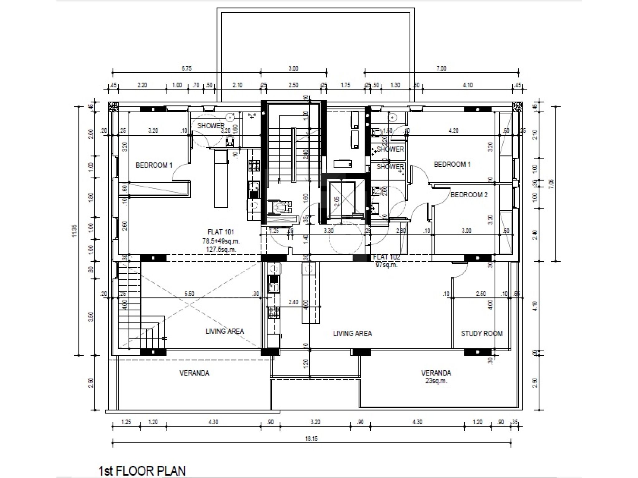 This apartment is on the first floor and consists of the living room with dining area, open plan kitchen, two bedrooms, a study room and two bathrooms. One of the bathrooms is en-suite in master bedroom.