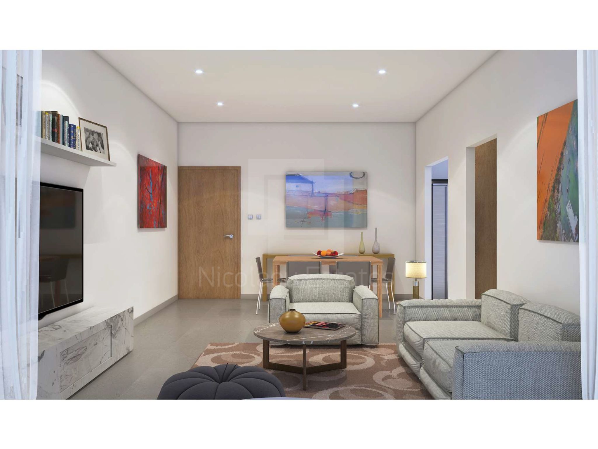 - Θα τοποθετηθεί έγχρωμη θυροτηλεόραση σε κάθε διαμέρισμα.
