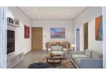 This apartment is on the second floor and consists of a living room with dining area, open plan kitchen, one bedroom and a bathroom.