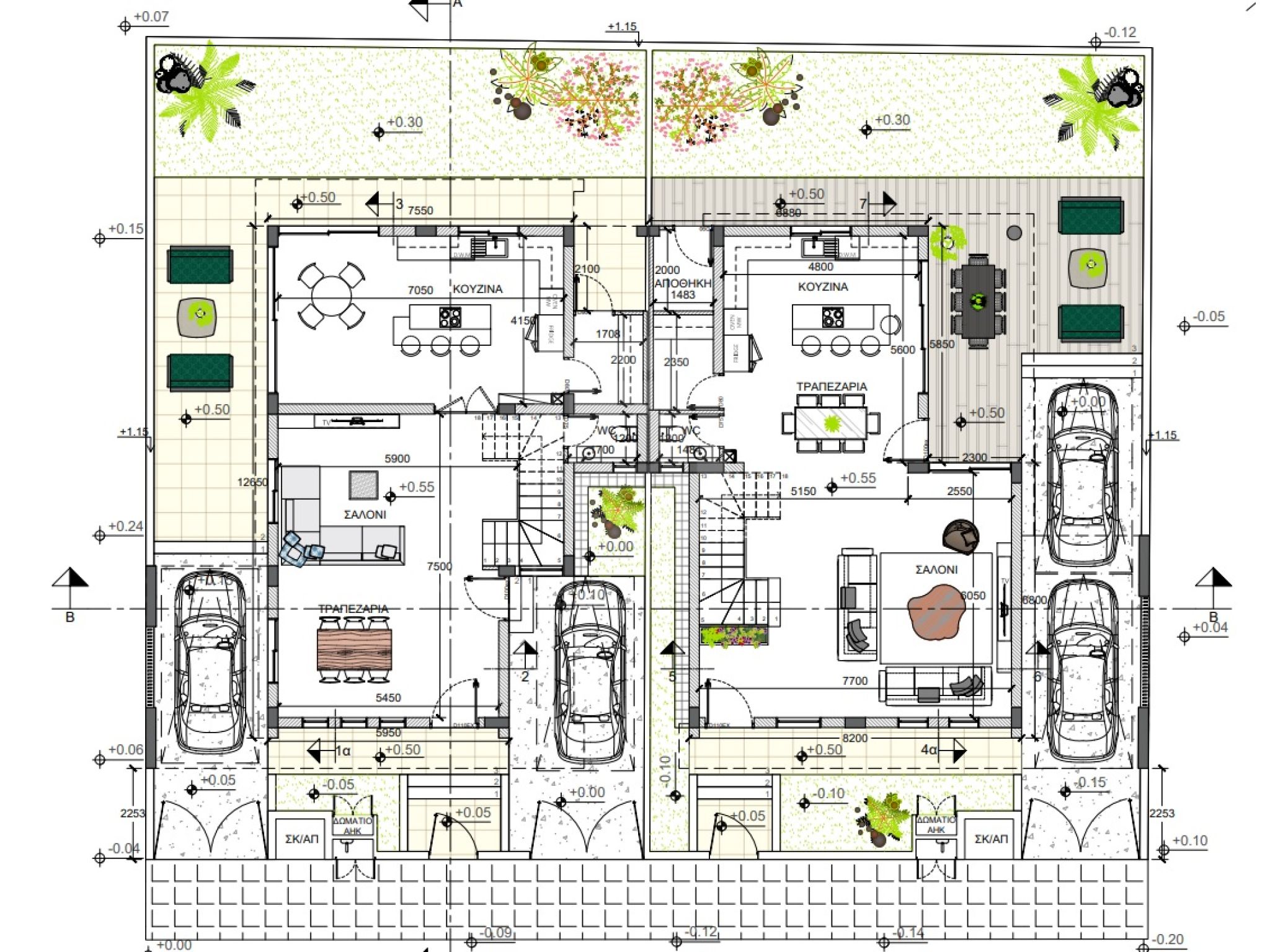 The ground floor includes a living area, dining area, cellar, an open plan kitchen, storage room and guest toilet. Living areas and kitchen will have access to the garden and the BBQ area.