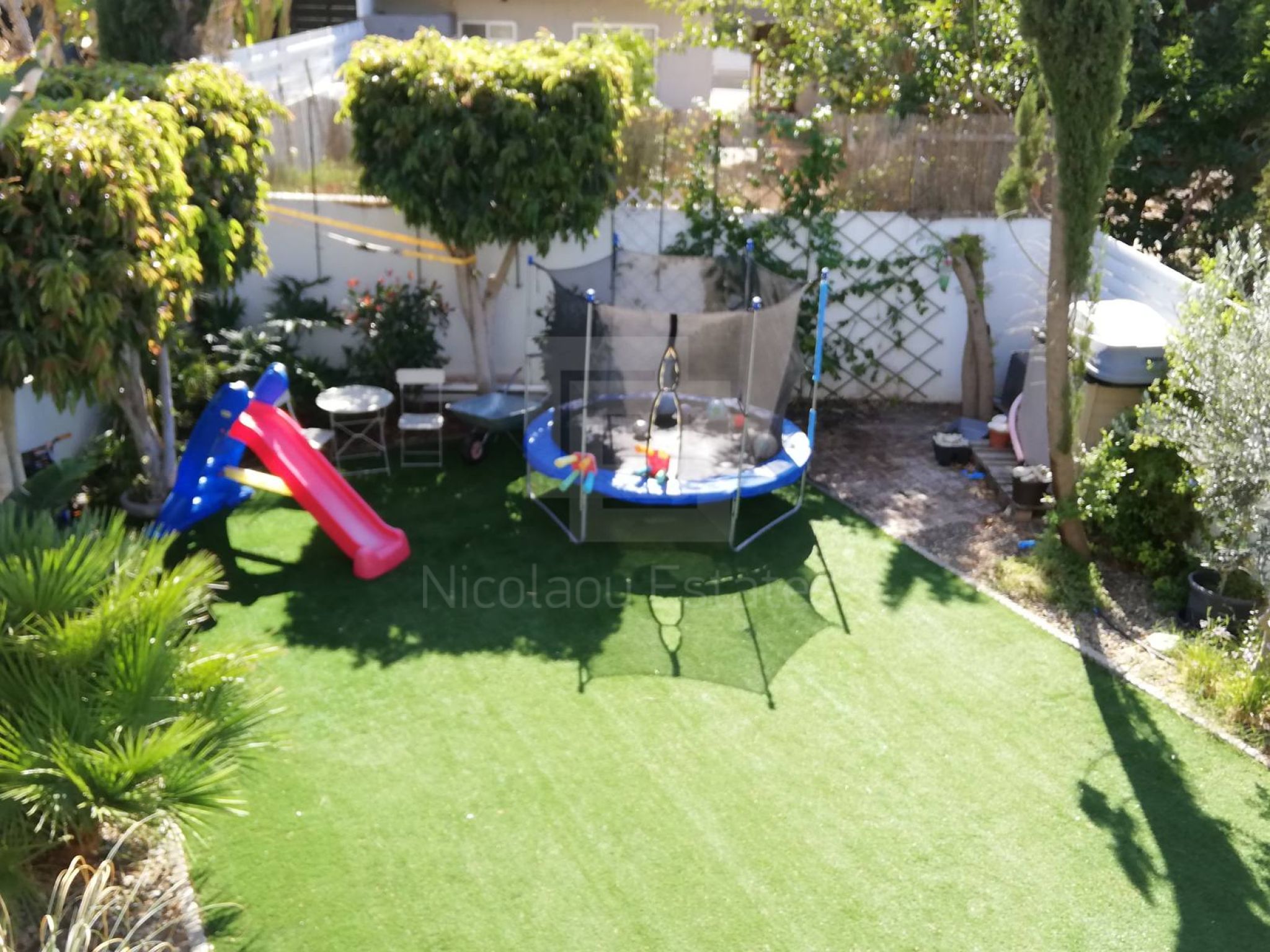 • Μεγάλος ώριμος μαζεμένος κήπος με αυτόματο πότισμα, τεχνητό γρασίδι ποιότητας Α’