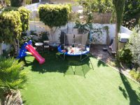 • Large mature garden with automatic watering system, excellent quality artificial grass