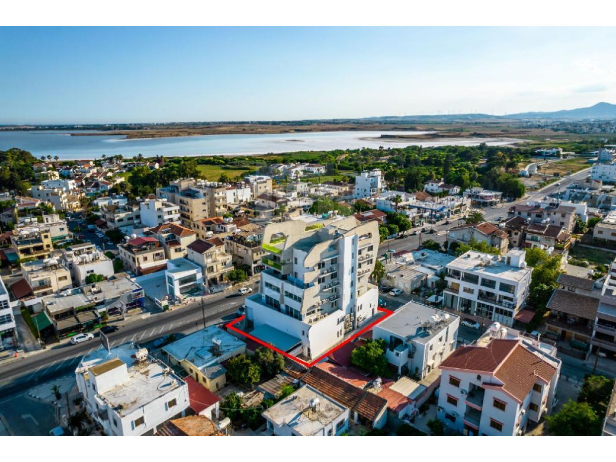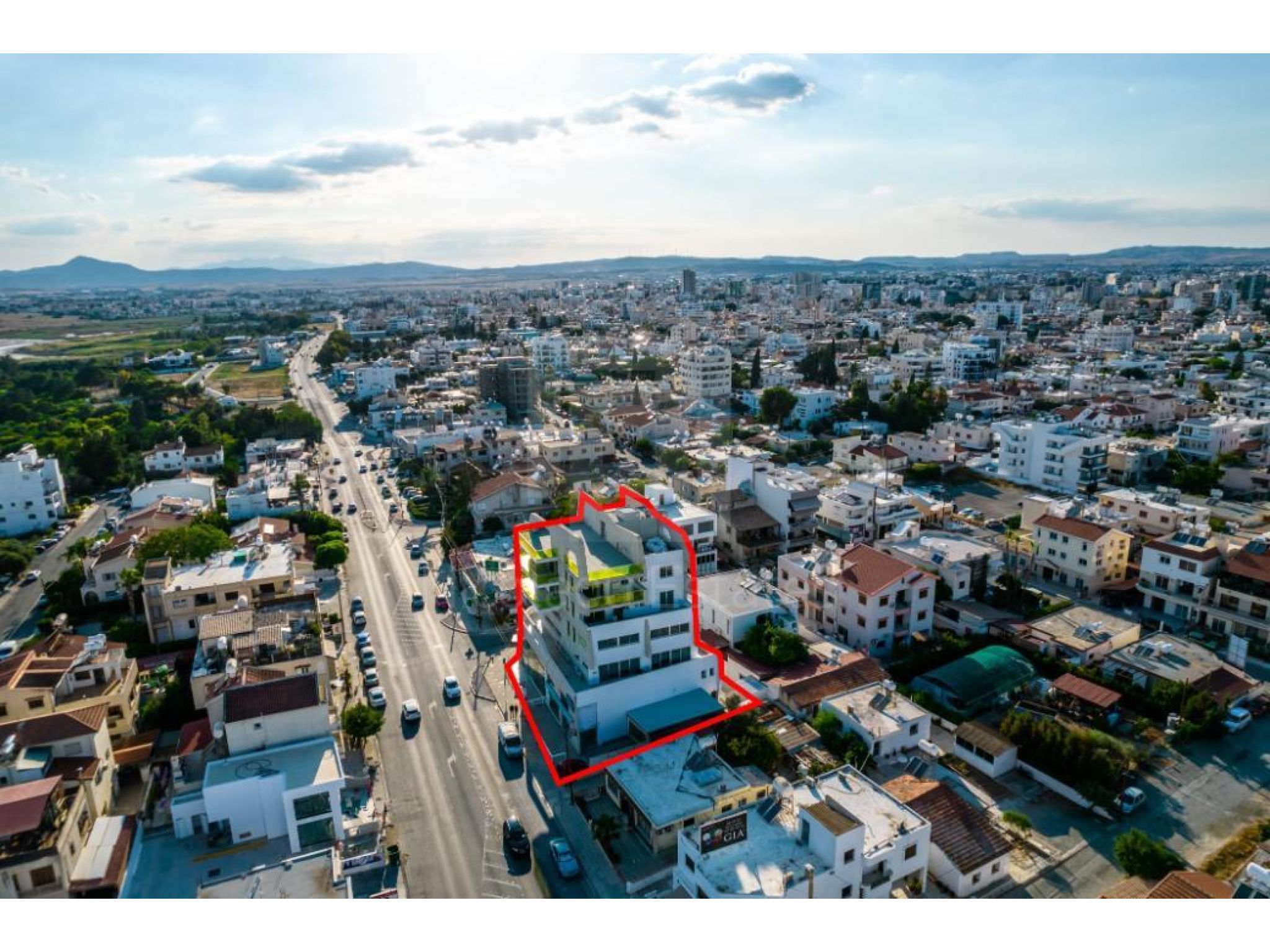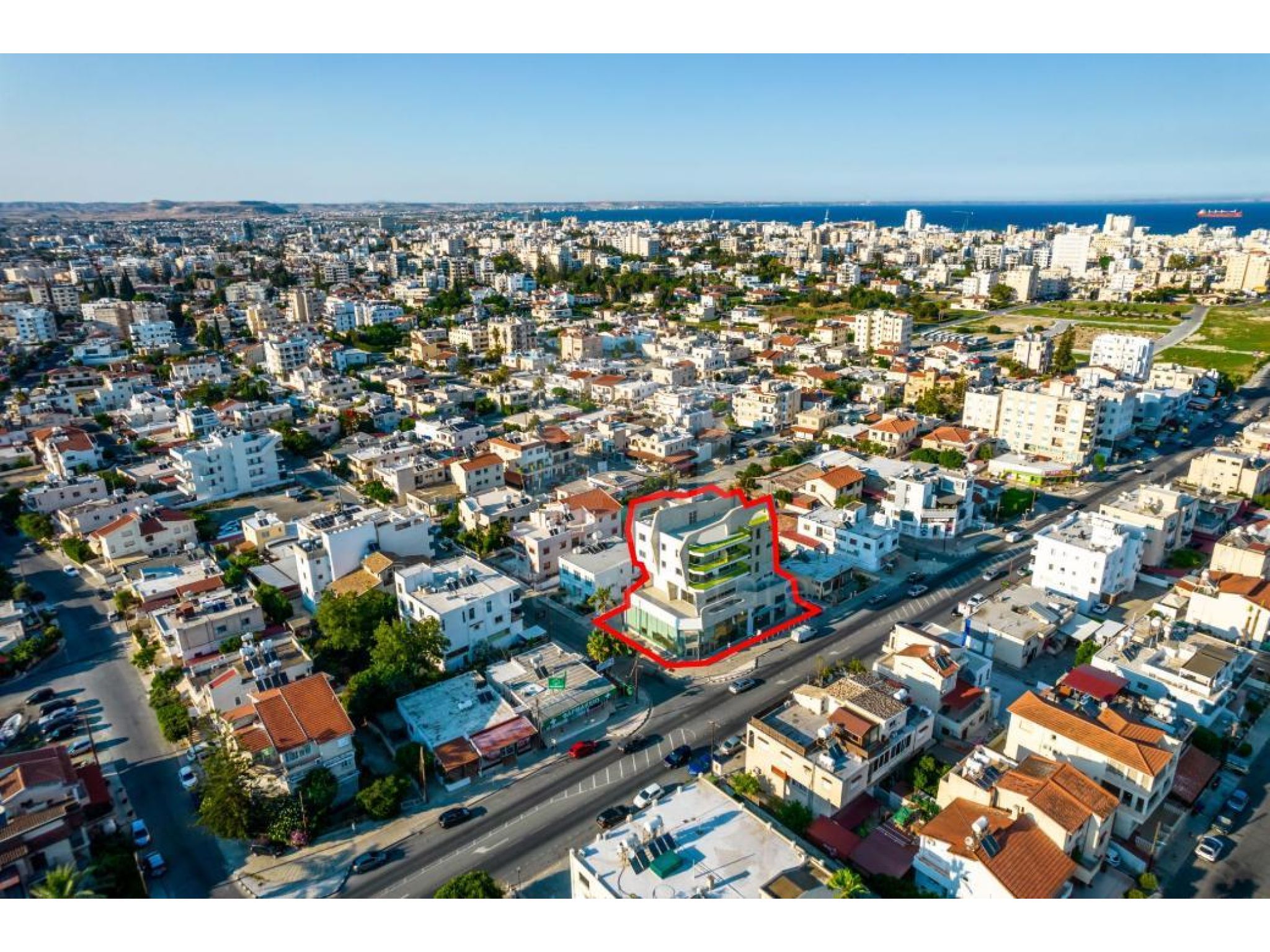 The property is a four storey commercial building named “Imperial Court” in Agios Nicolaos quarter, Larnaca. The building is adjacent to Agias Faneromenis avenue and on Macedonia's street. It is located 700m from the junction of Faneromeni and Artemidos avenues. The building has a covered area of 1,440sqm, a mezzanine of 225sqm, a basement of 650m and 170sqm uncovered verandas. It consists of 2 shops on the ground floor, 6 apartments and 2 offices on the upper floors. It offers close proximity to all amenities and excellent access to Larnaca's city center. The property is partly occupied.