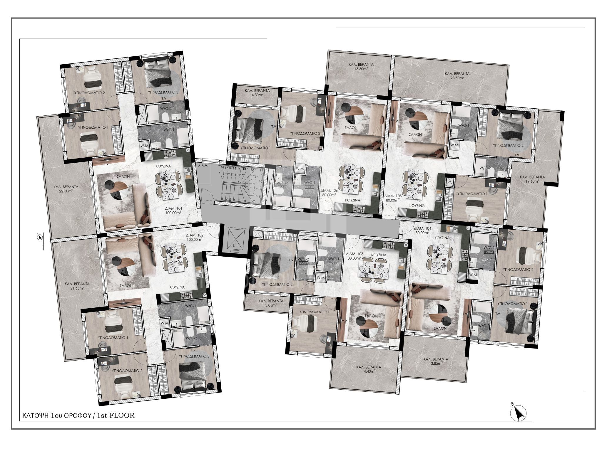 Three bedroom apartment for sale in Lakatamia. The apartment is build on the first floor and consists of a living room with dining area, open plan kitchen, three bedrooms and two bathrooms (master bedroom en-suite).