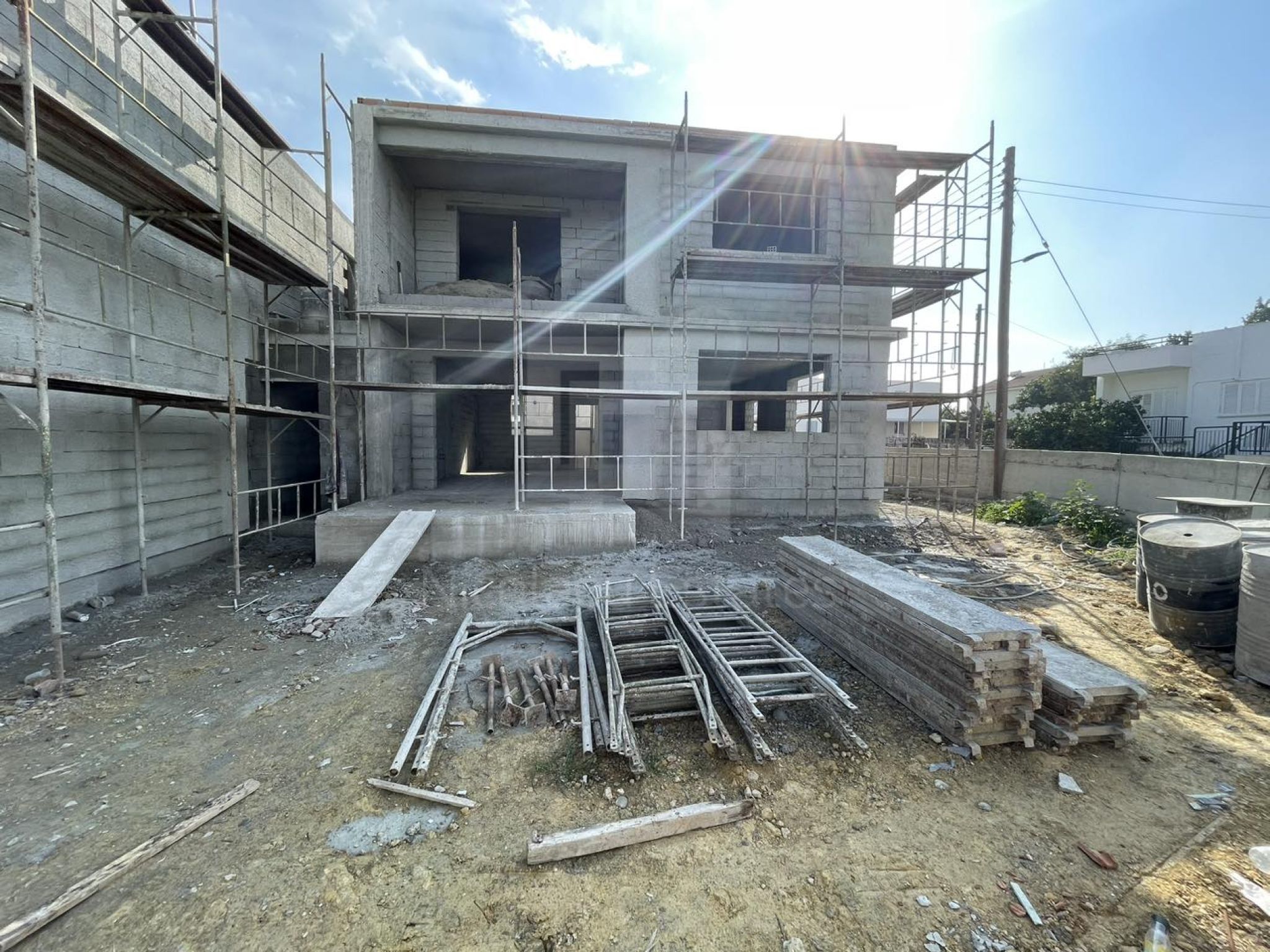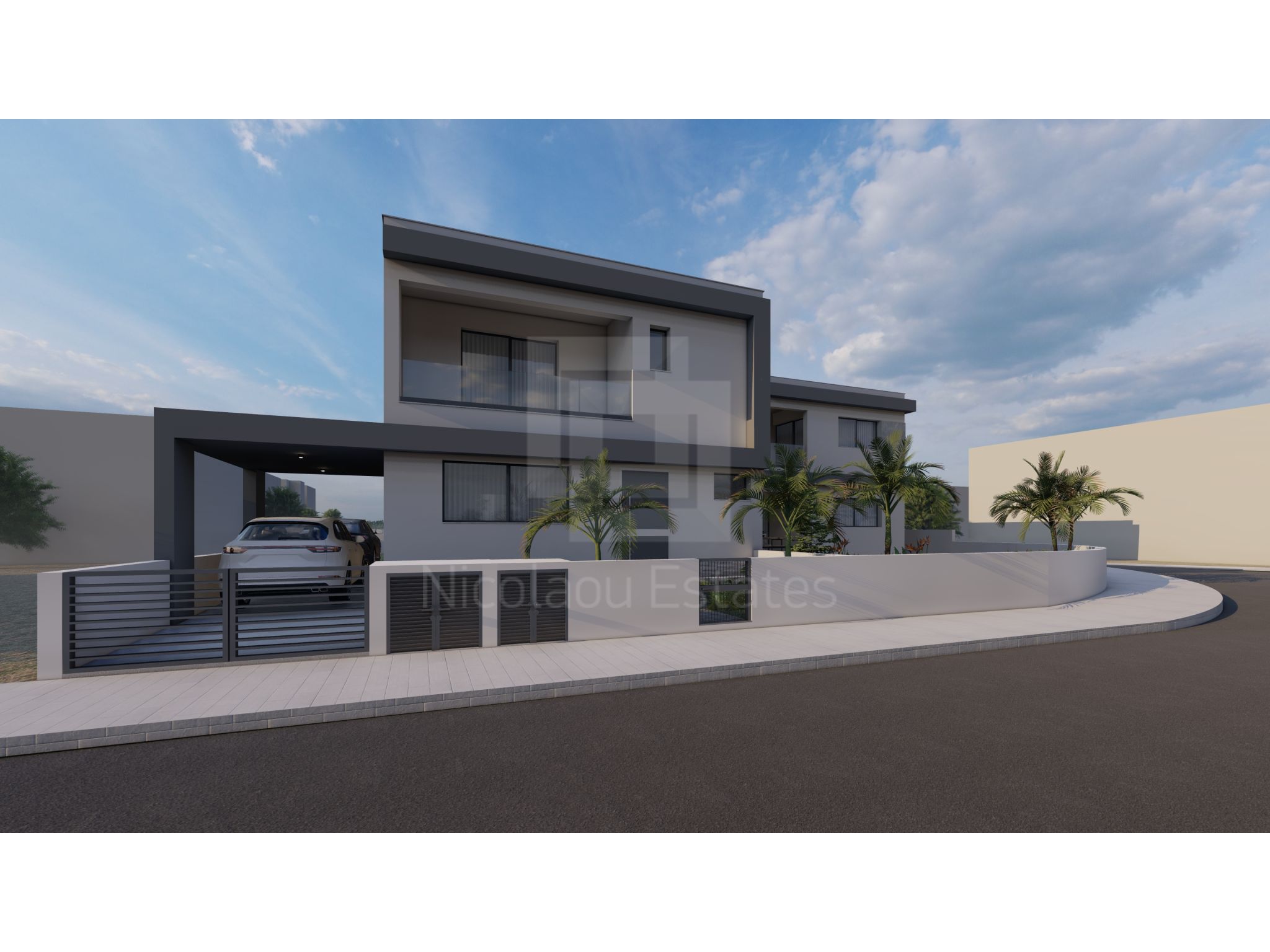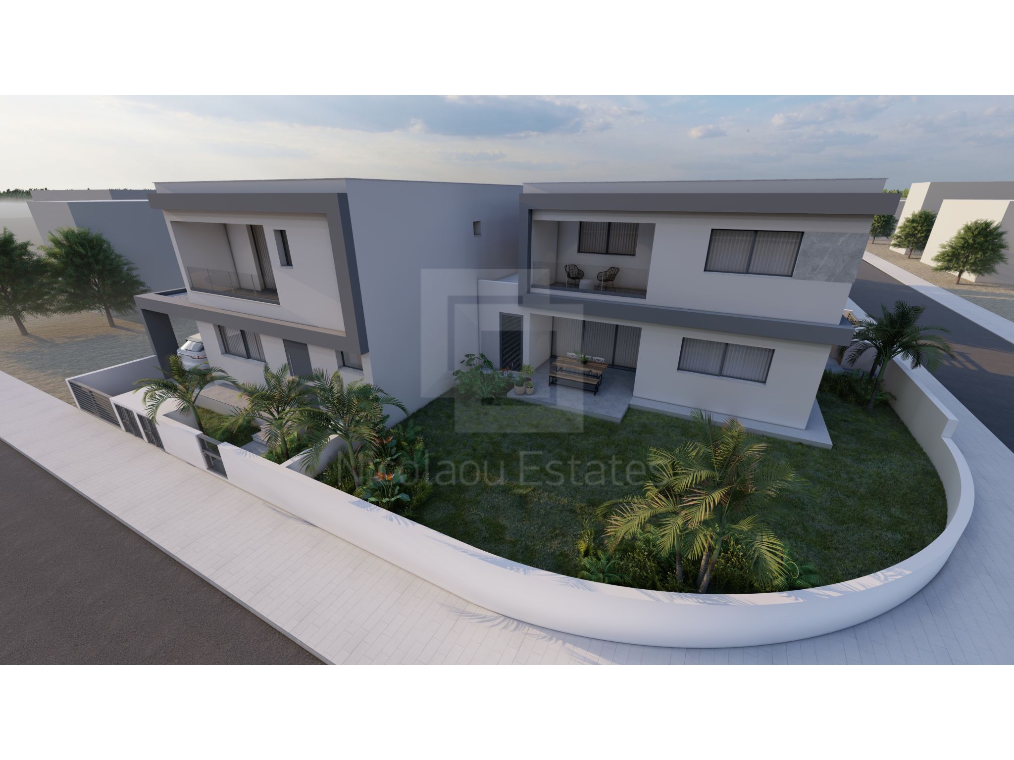 Brand new project with two houses in Kallithea available for sale. Each property consists of two floors. The ground floor consists of a living room with dining area, open plan kitchen and a guest wc. The first floor consists of three bedrooms and two bathrooms (one en-suite in master bedroom).