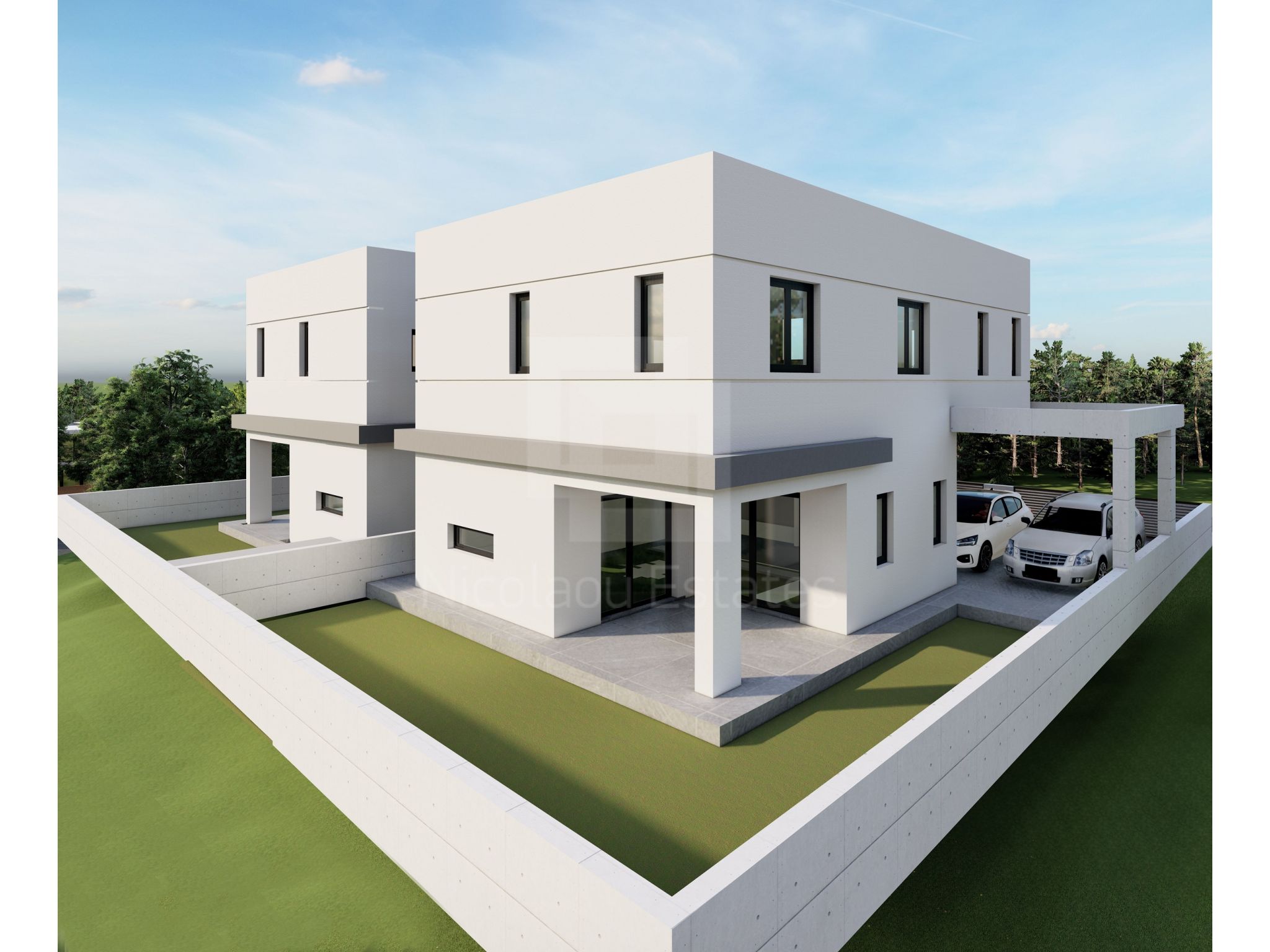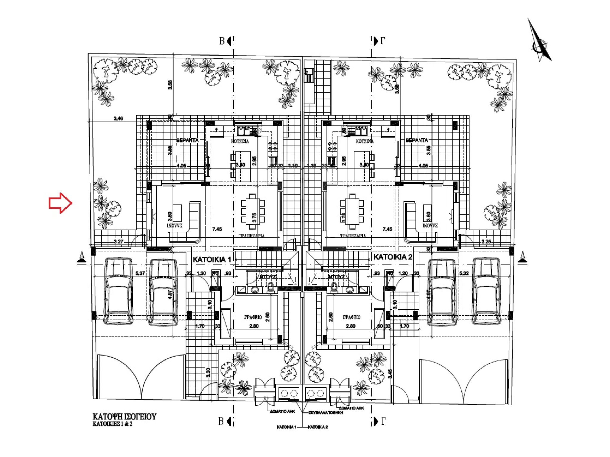 - Στεγασμένος χώρος στάθμευσης για δύο αυτοκίνητα (δίπλα - δίπλα)).