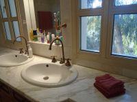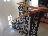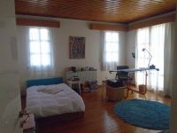 At the back side there is separate wooden stair case that leads into the master bedroom on the top. Additionally, from the main hall there are handmade beautiful stairs leading to the second floor of the house where the bedrooms are. There is a large bathroom with bath, toilet and two sinks and the master bedroom has en suit toilet with shower.