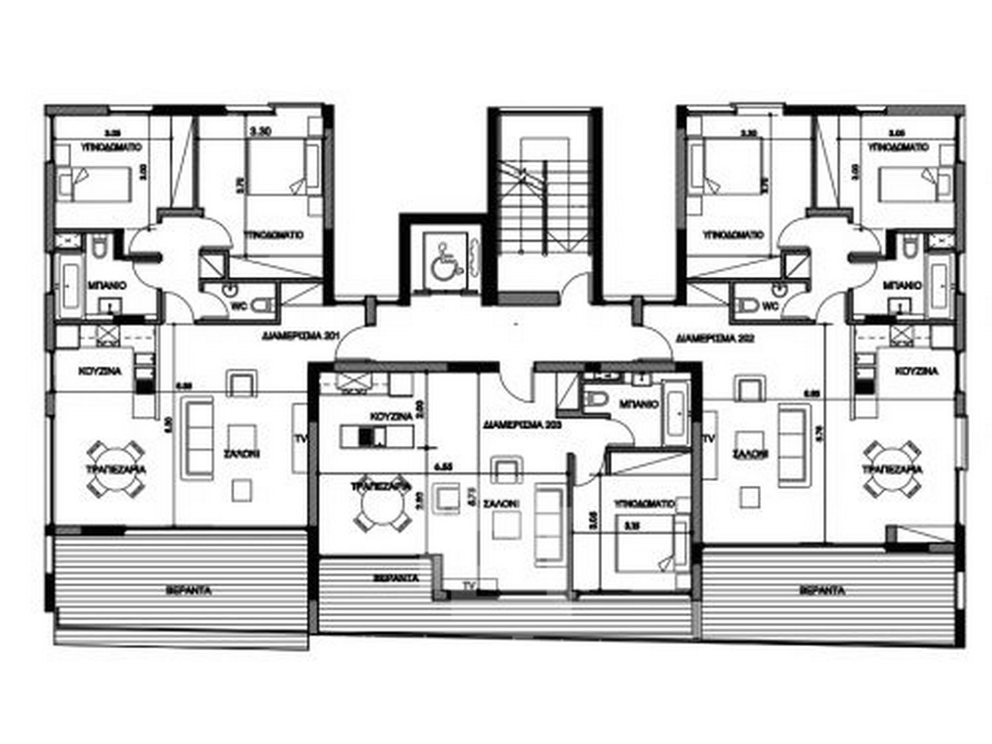 3 bedroom flats. 125m2 interior covered area plus 75m2 balcony. Price 350,000euro + VAT