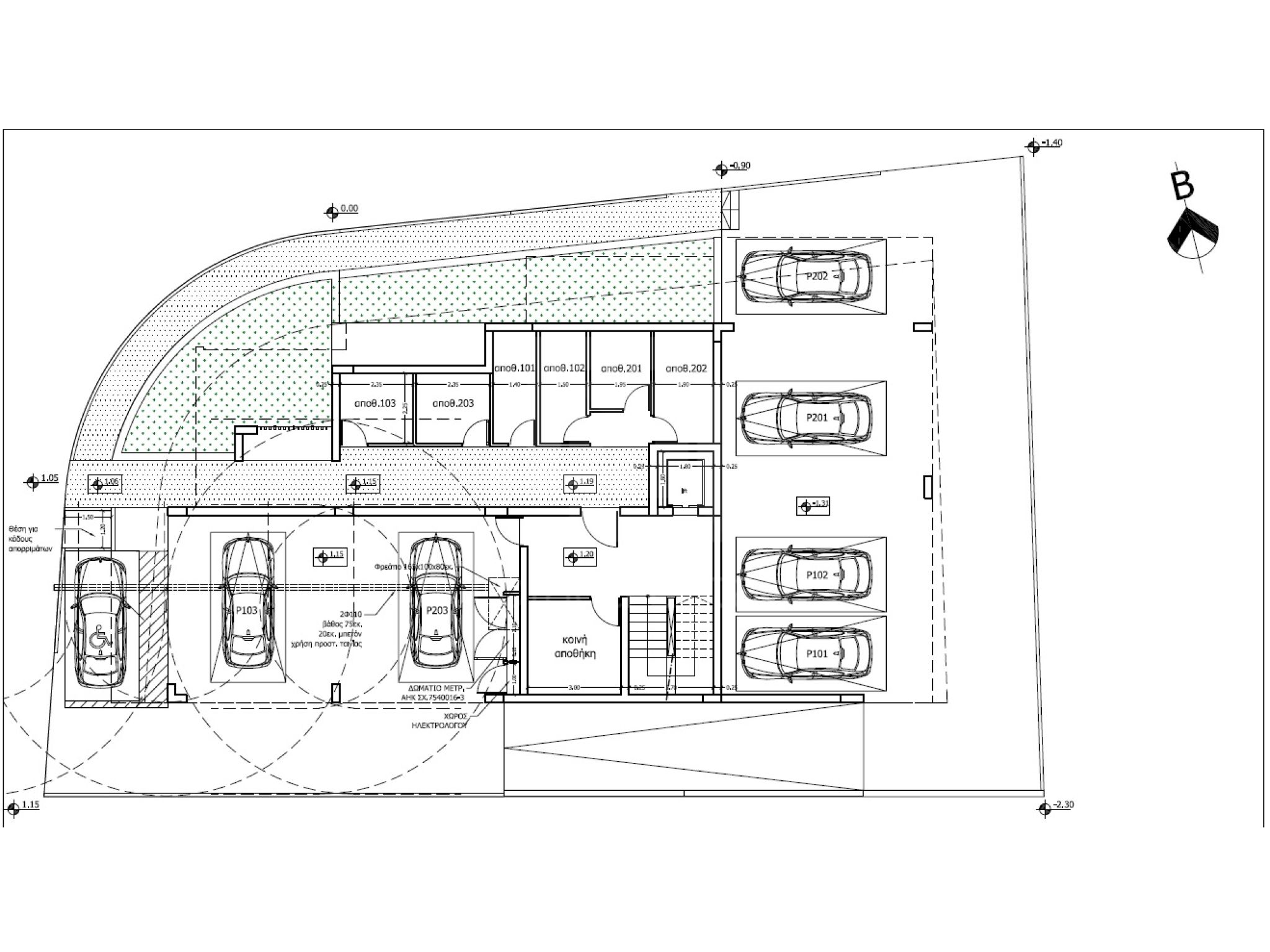 - Στεγασμένος χώρος στάθμευσης 12 τ.μ. με πρόβλεψη φορτιστή ηλεκτρικού αυτοκινήτου για κάθε διαμέρισμα.