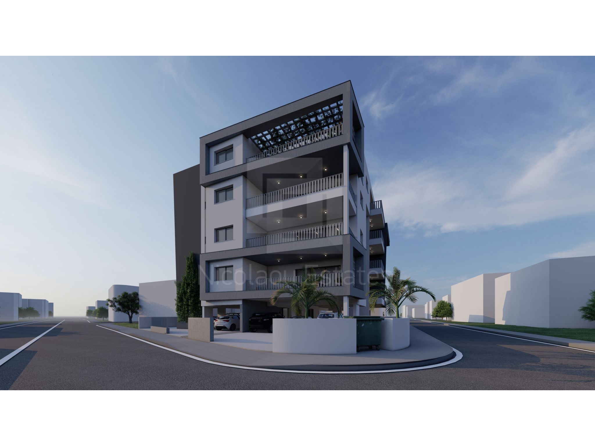 The building is located in a quiet area in Agios Dometios and consists of 4 floors with one, two & three bedroom apartments. All have comfortable and large verandas. Each apartment has its own parking space and its own storage room.