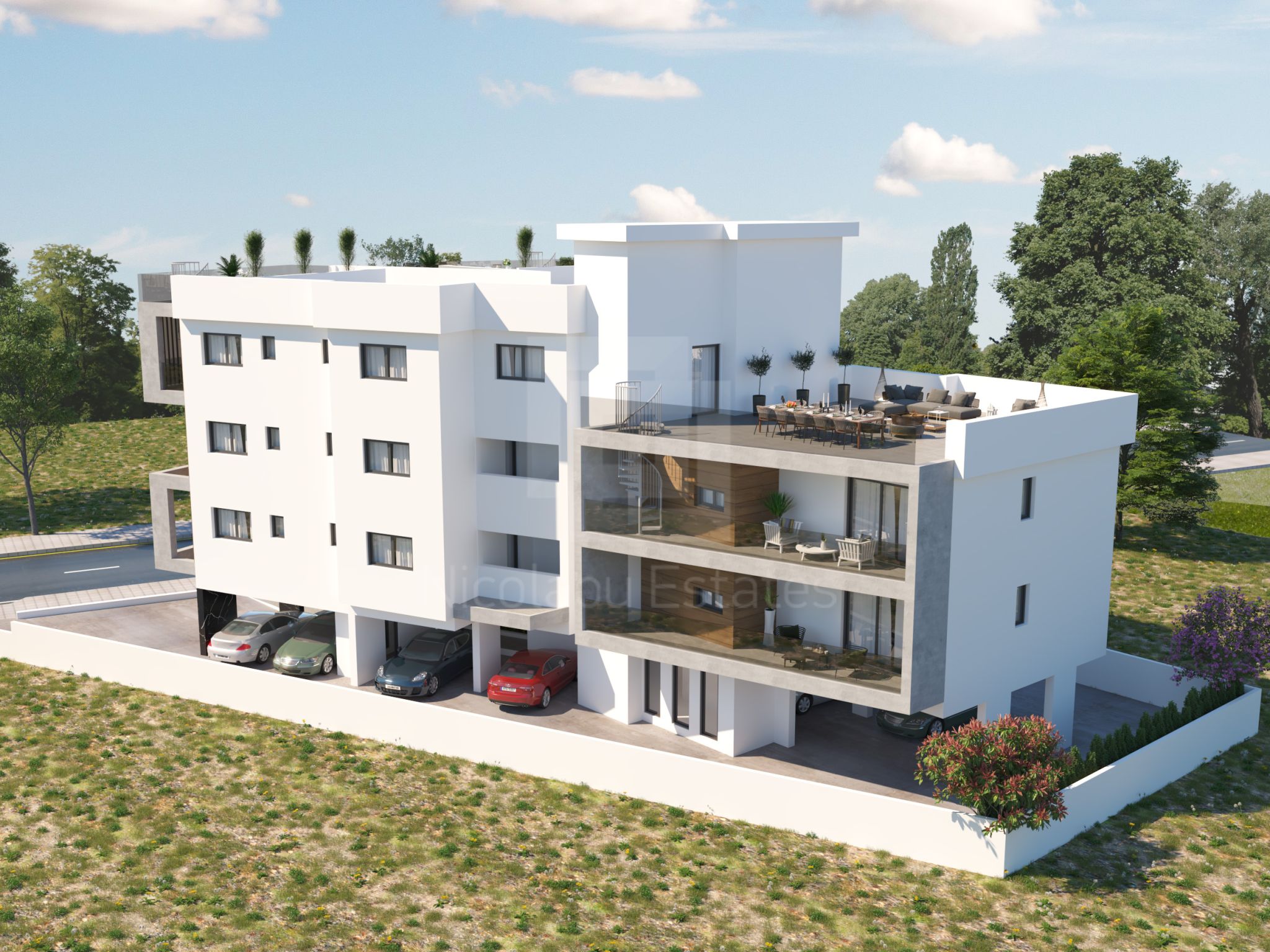 Το νέο αυτό έργο βρίσκεται στα Λατσιά, δίπλα σε καταπράσινο χώρο και πεζόδρομο, σε μια ήσυχη γειτονιά κοντά στο ταχυδρομείο. Αποτελείται από 8 διαμερίσματα των 2 και 3 υπνοδωματίων. Αυτό το διαμέρισμα βρίσκεται στον τρίτο όροφο και αποτελείται από ένα σαλόνι με τραπεζαρία, μια κουζίνα, δύο υπνοδωμάτια και δύο μπάνια (το ένα en-suite στην κύρια κρεβατοκάμαρα).
