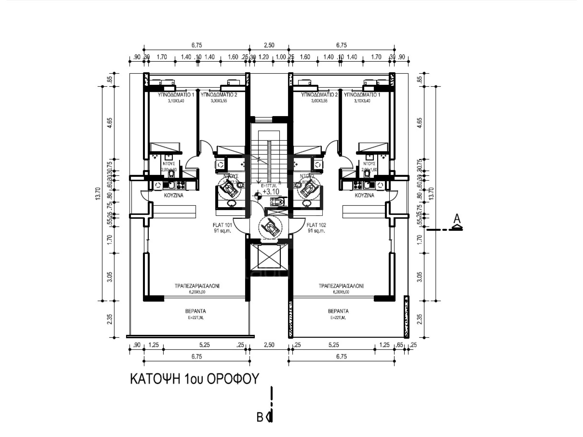 This is a 3-story modern residential building consisting of 6 apartments and a roof garden with A’ Energy Efficiency. The building will be erected Dasoupoli area, near the “Kalispera” traffic lights, opposite and next to a green area, in a quiet neighborhood near the headquarters of the Olympic Committee.