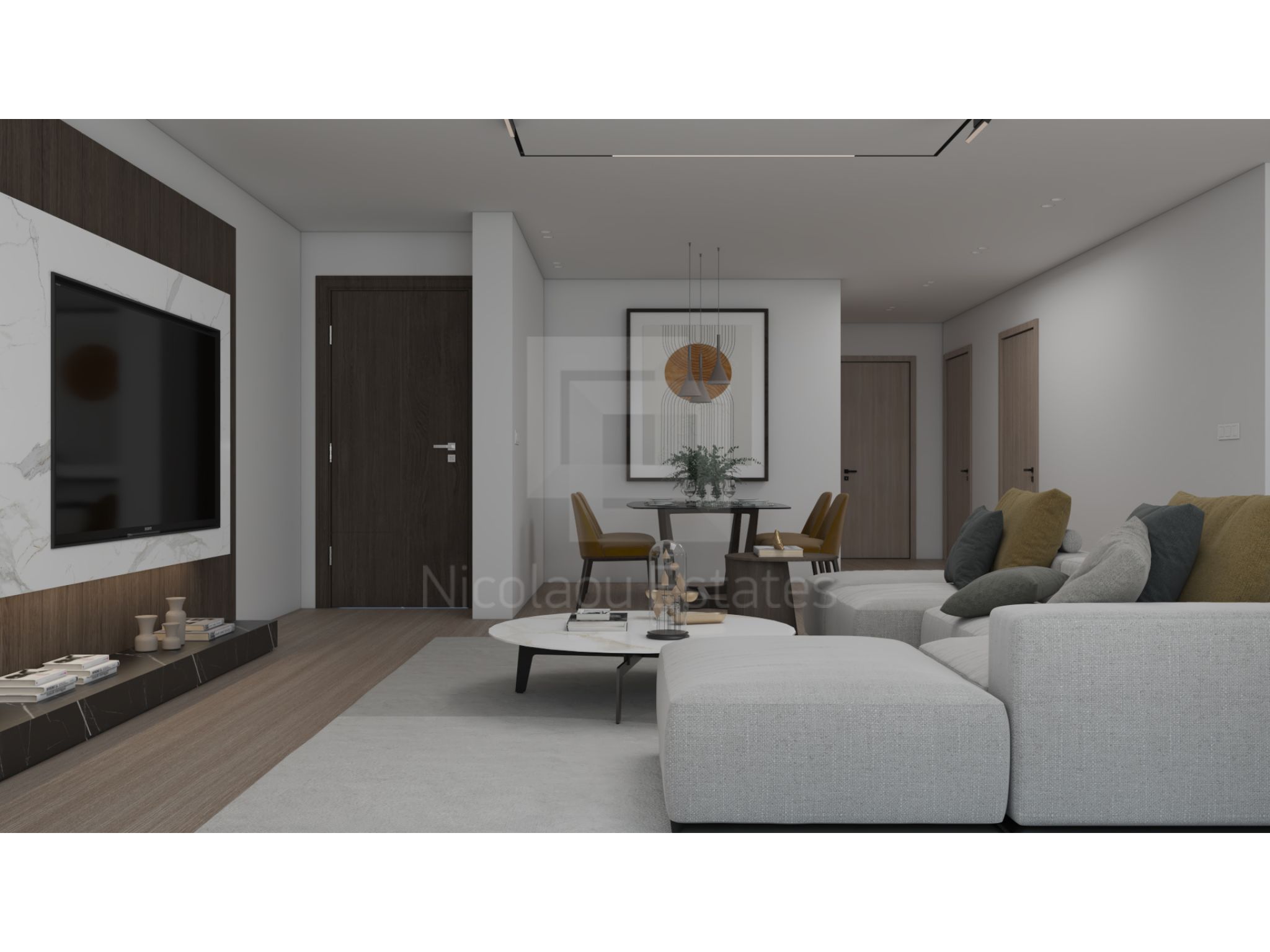 Αυτό το διαμέρισμα βρίσκεται στον πρώτο όροφο και αποτελείται από σαλόνι με τραπεζαρία και ενιαία κουζίνα, τρία υπνοδωμάτια και δύο μπάνια.