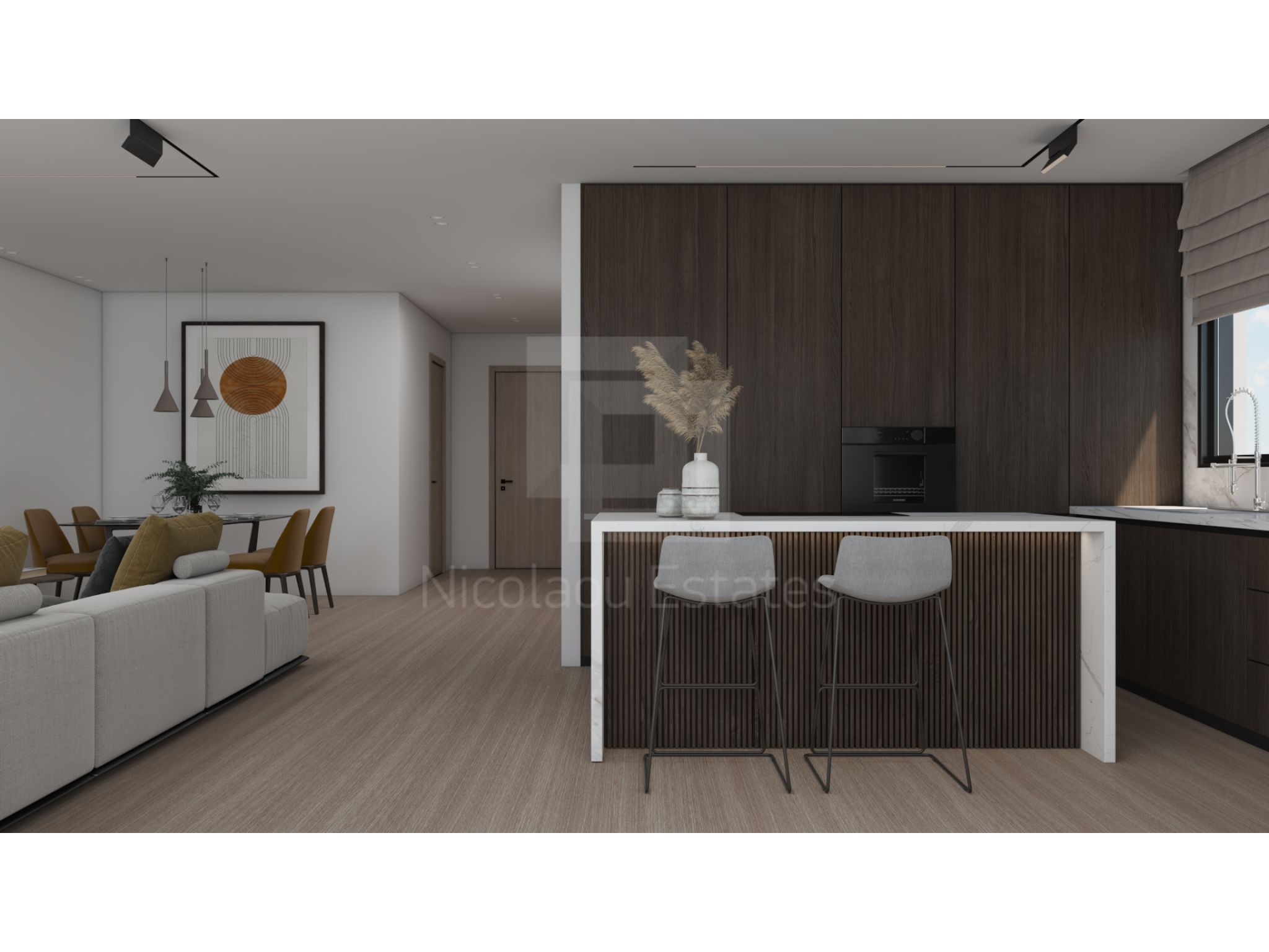 This apartment is on the first floor and consists of a living room with dining area and open plan kitchen, three bedrooms and two bathrooms.