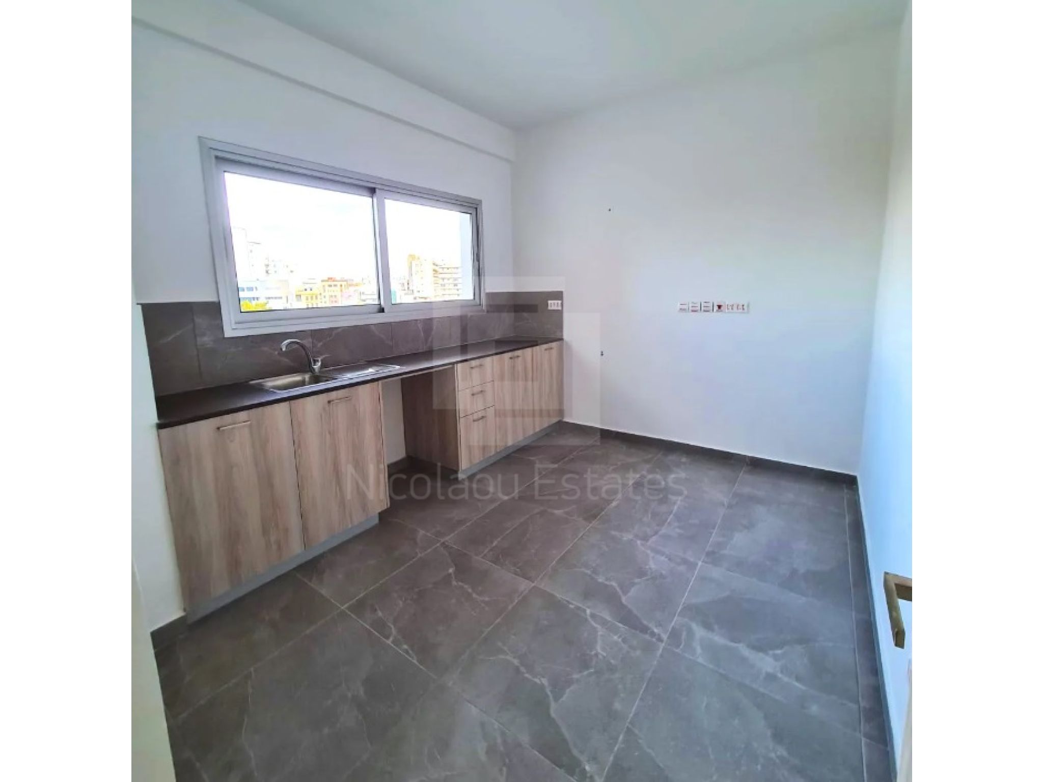 The apartment is fully renovated (tiles, doors, aluminum kitchen and all electricity and water supplies). The building comes also with brand new elevator.