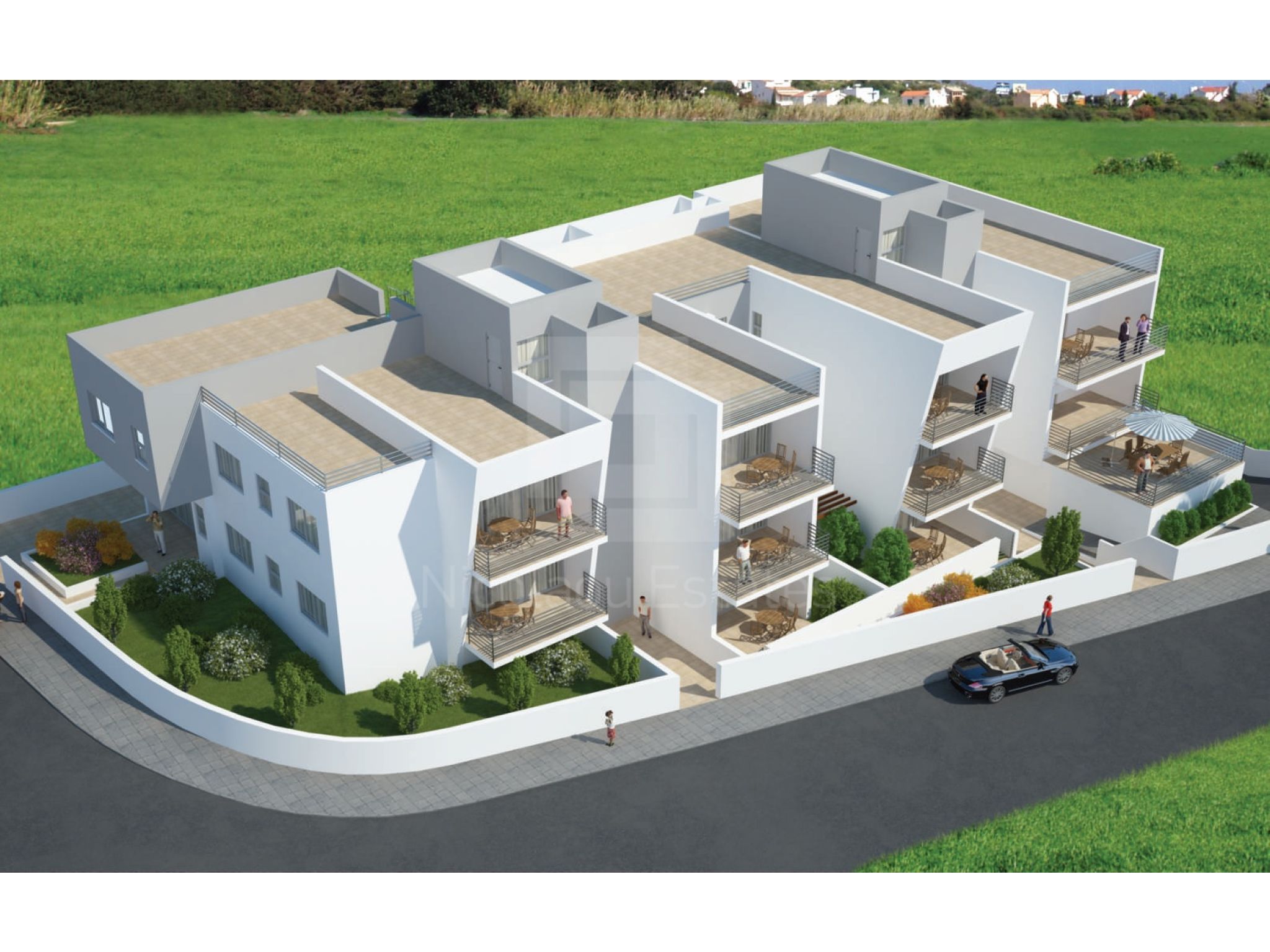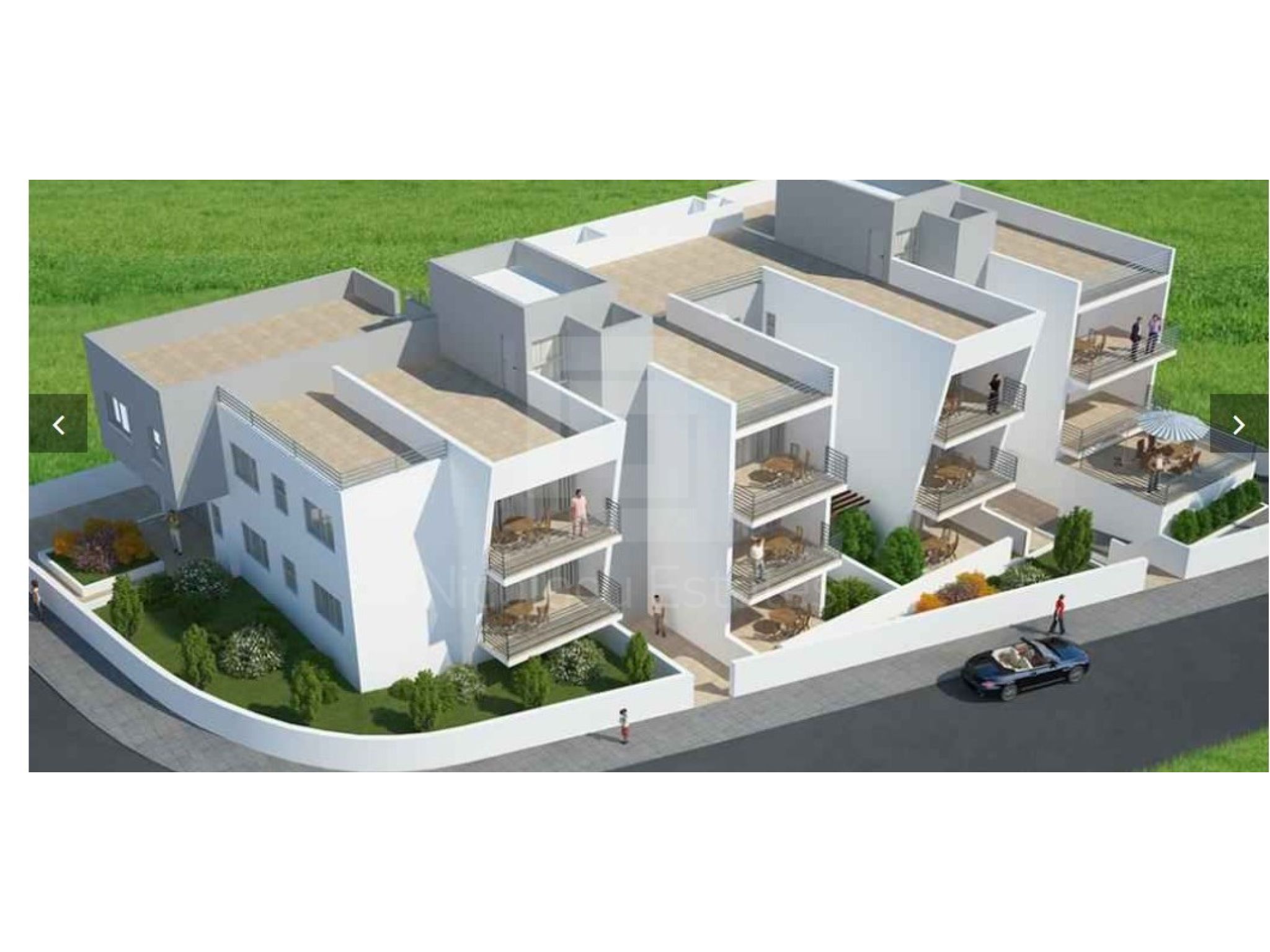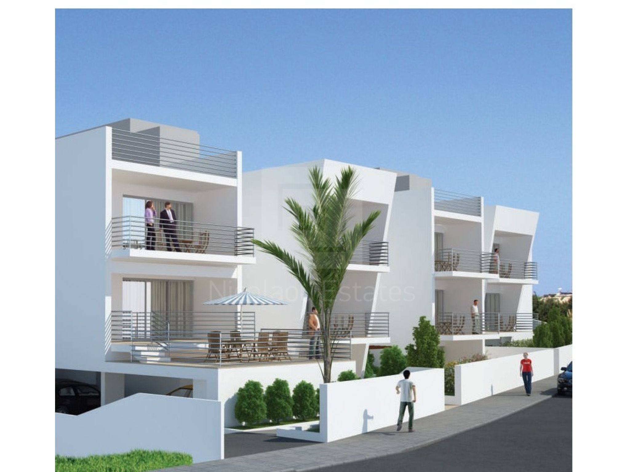 Το έργο αποτελείται από οκτώ (8) διαμερίσματα - δύο υπνοδωματίων και τρία (3) διαμερίσματα - τριών υπνοδωματίων με ιδιωτικούς κήπους και ευρύχωρες, σκεπαστές βεράντες.