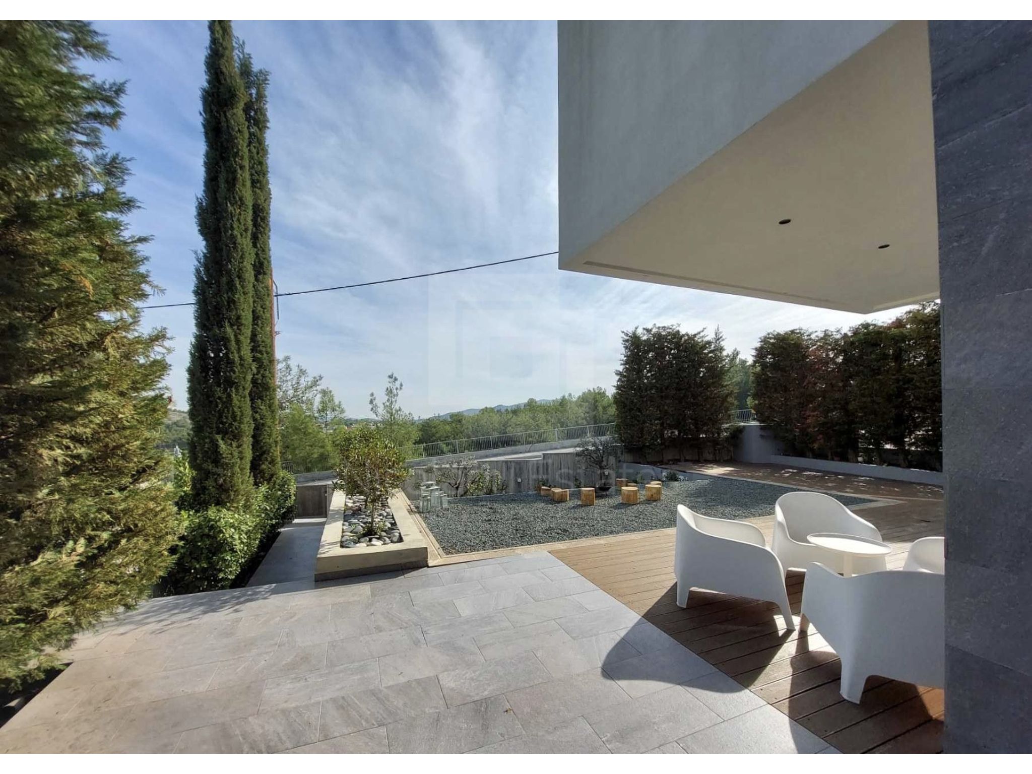 The house is set on a hill with remarkable views and beautiful greenery surrounding it!