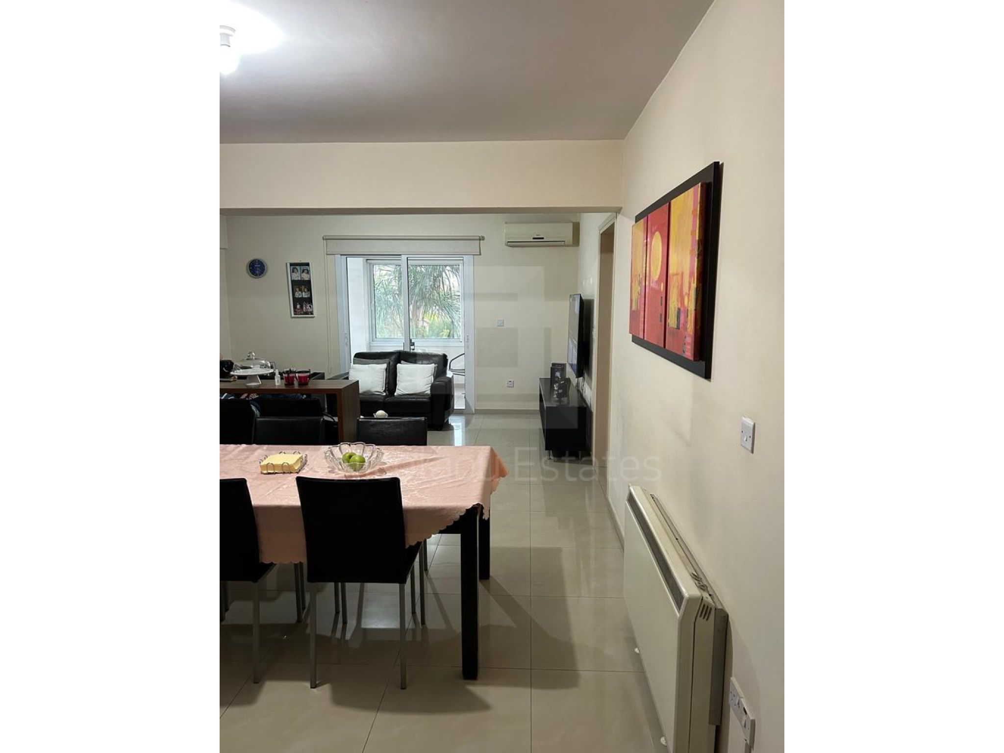 Comfortable 2 bedroom apartment with Excellent orientation. Bright on three sides it has air condition and autonomous central heating In all rooms, all electrical appliances and aluminium shatters. Also has separate water tank, new solar panels and pressure system. Internal area 75 square meters and covered terraces 25 square meters. Not subject to VAT.
