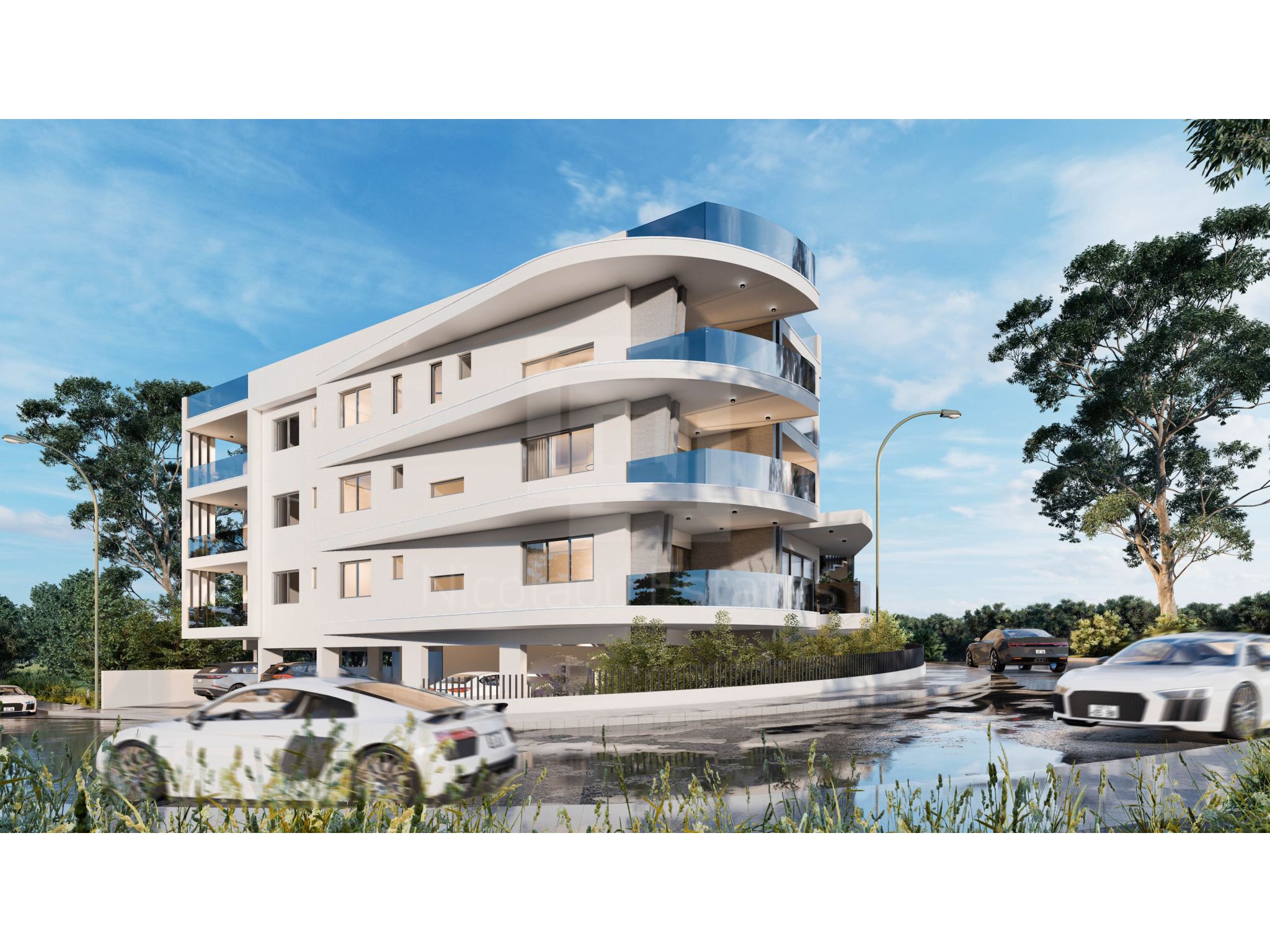 Under construction three story building with only 7 apartments in Latsia on a hill area, 2 and 3 bedroom penthouses with roof garden.