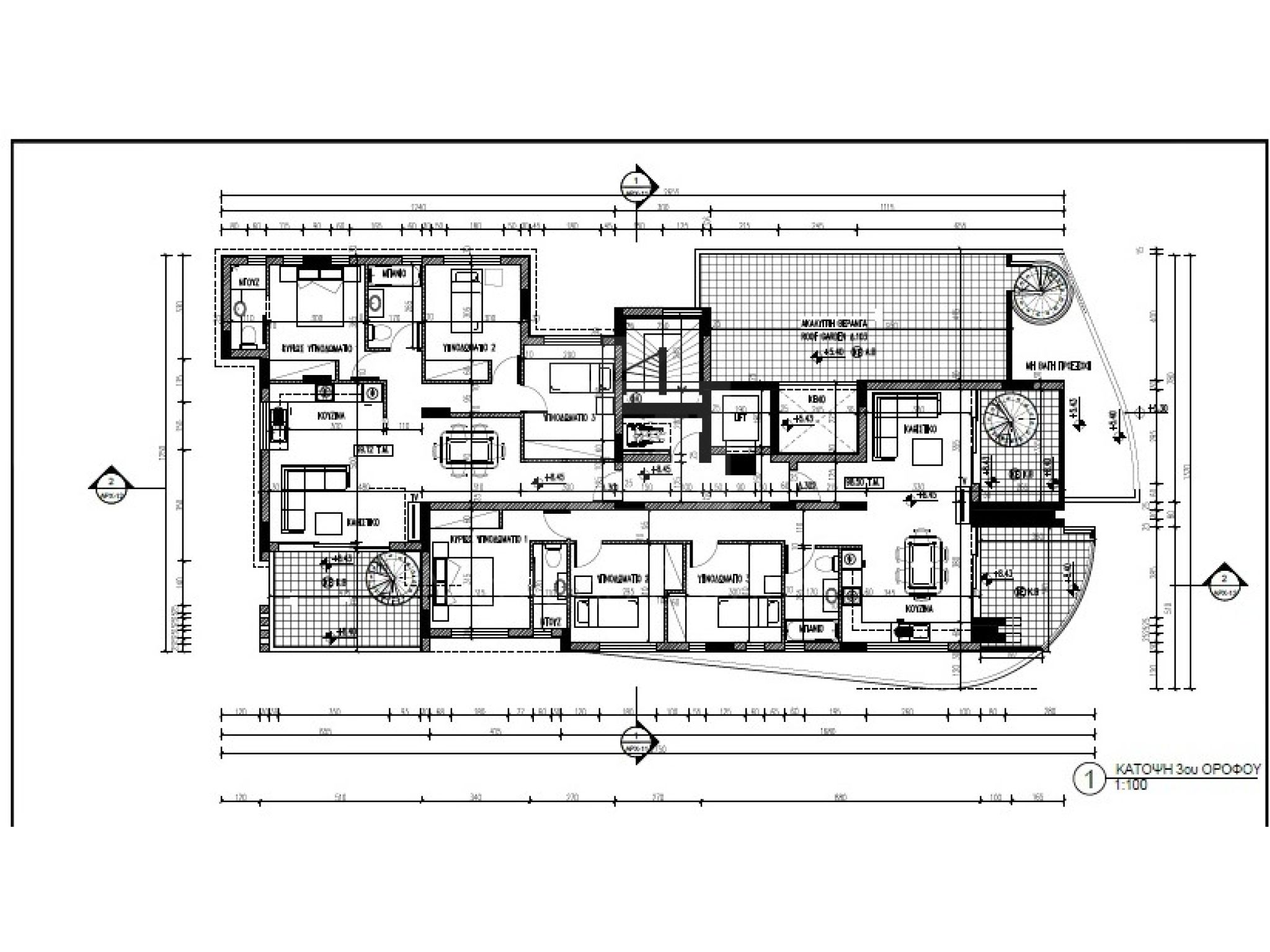 Πωλούνται Υποκατασκευή 7 διαμερίσματα σε τριώροφο κτίριο στα Λατσιά πάνω σε ύψωμα, 2 και 3 υπνοδωματίων ρετιρέ και με roof garden.