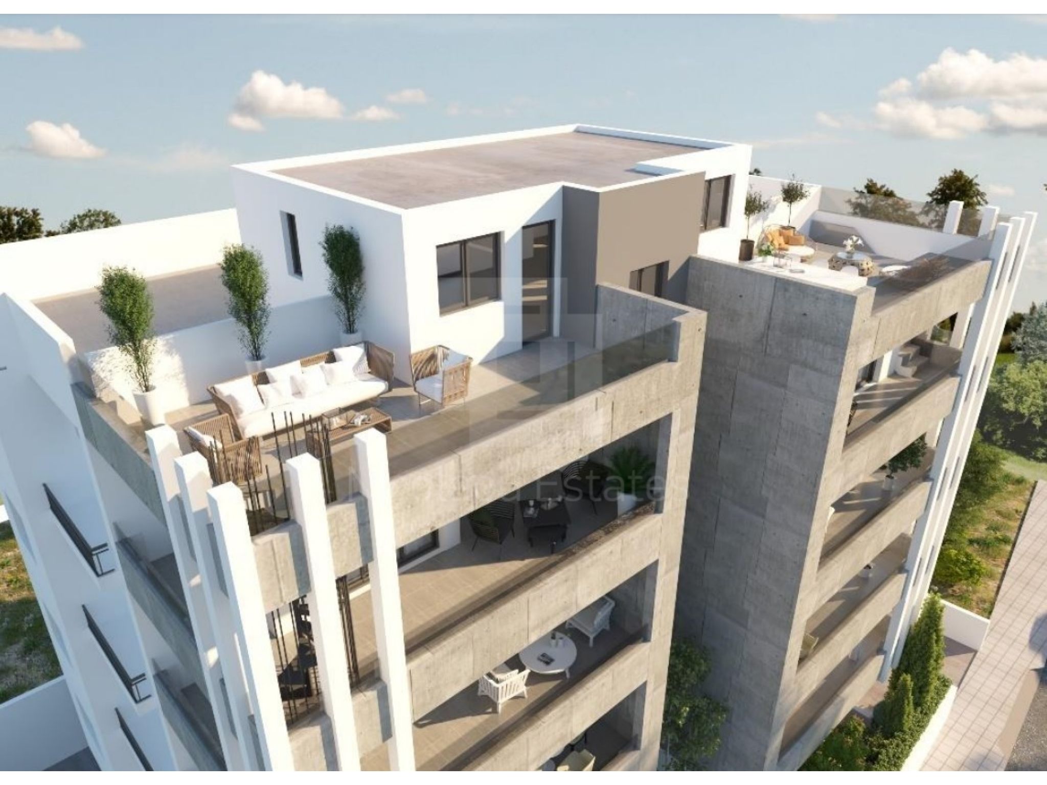 Το κτίριο αποτελείται από 8 πολυτελή διαμερίσματα σε τέσσερεις ορόφους. Κάθε όροφος αποτελείται από 2 εντελώς ανεξάρτητα διαμερίσματα, ένα των 3ων υπνοδωματίων και ένα των 2 υπνοδωματίων. Τα διαμερίσμα αυτο βρισκετε στο τελευταίου ορόφο και επωφελειτε από ιδιωτικό κήπο οροφής με ανεξάρτητο βοηθητικό δωμάτιο.