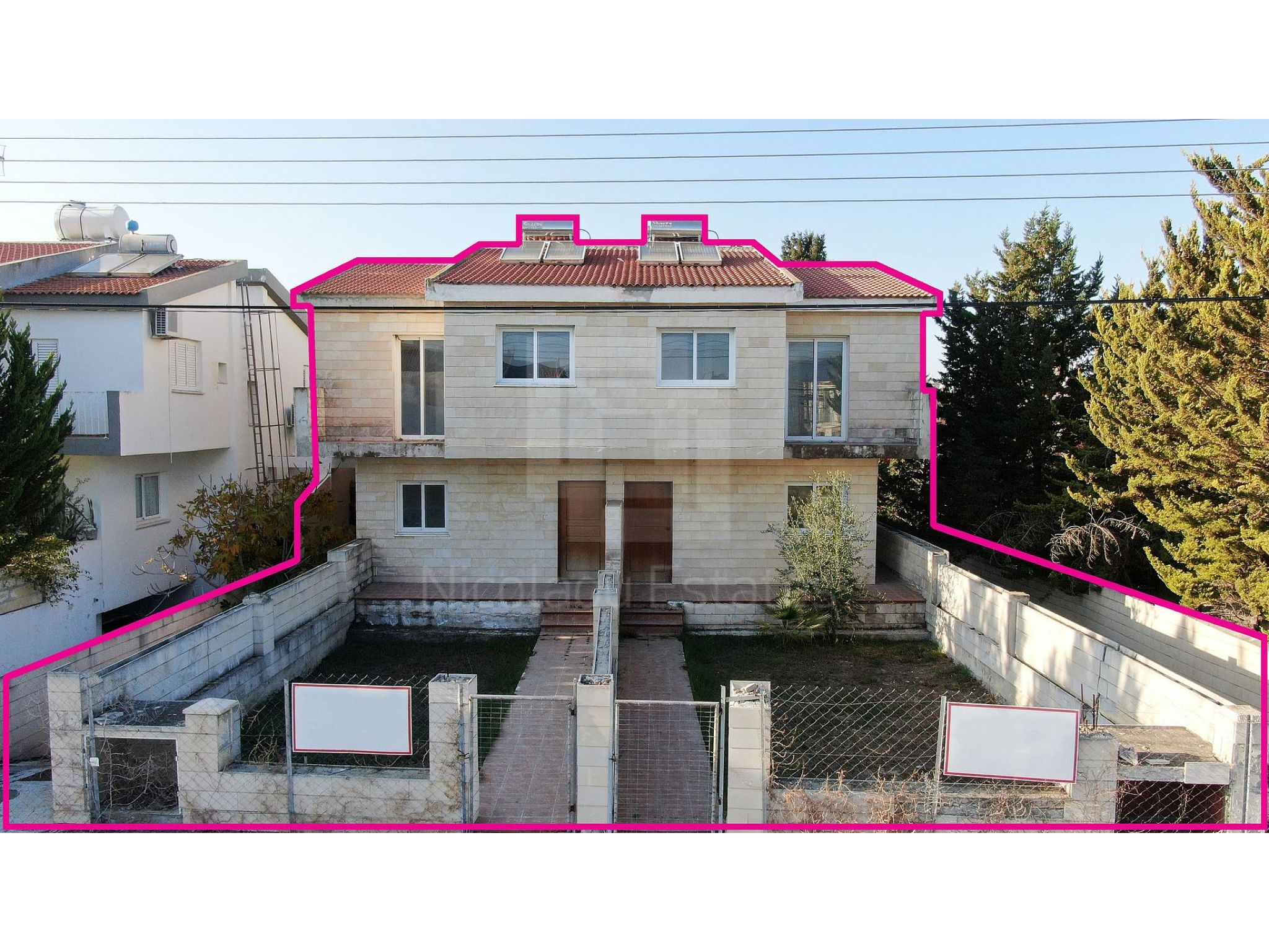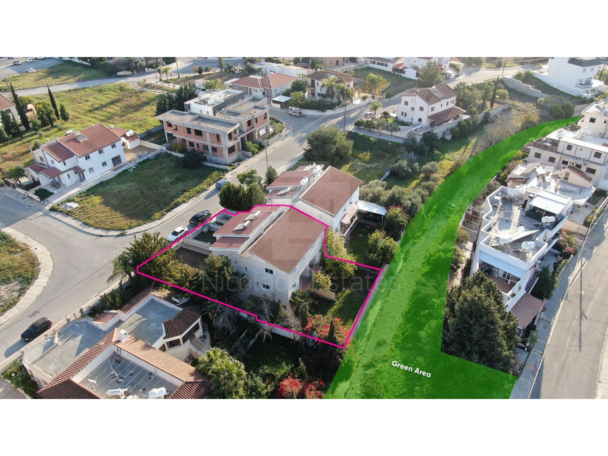 Δύο ημιτελείς ημιανεξάρτητες κατοικίες στα Λατσιά Λευκωσίας. Τα ακίνητα εφάπτονται στην καταπράσινη περιοχή και βρίσκονται 420μ ανατολικά της Λ. Αψίδας Μακαρίου ΙΙΙ, 400μ βόρεια της Λ. Αγ. Γεωργίου και 350μ βορειοανατολικά του Β' Δημοτικού Σχολείου Λατσιών. Κάθε σπίτι αποτελείται από ενιαίο χώρο καθιστικού/τραπεζαρίας, κουζίνα και W.C επισκεπτών. στο ισόγειο. Ο 1ος όροφος αποτελείται από 4 υπνοδωμάτια (το κύριο υπνοδωμάτιο με en-suite) και ένα οικογενειακό μπάνιο. Επιπρόσθετα, και οι δύο κατοικίες διαθέτουν υπόγειο με χώρο στάθμευσης στο οποίο η πρόσβαση γίνεται μέσω εξωτερικής ράμπας ή/και εσωτερικής σκάλας. Το κτίριο έχει δάπεδο από κεραμικά πλακάκια σε όλους τους χώρους, προβλέψεις χωριστών μονάδων A/C, παροχές κεντρικής θέρμανσης και κουφώματα αλουμινίου με διπλά τζάμια.