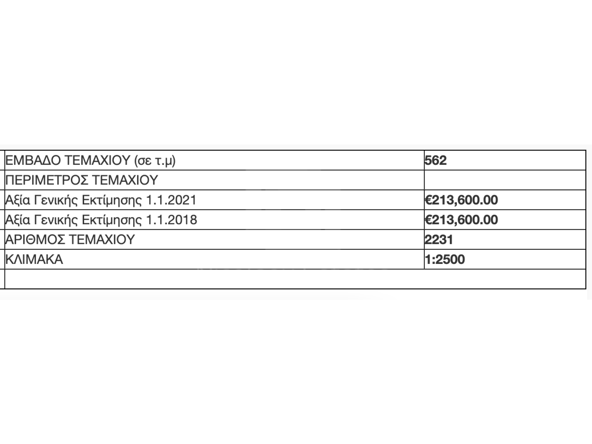 Η τελευταία εκτίμηση του Κτηματολογίου για το οικόπεδο είναι στις 213.000