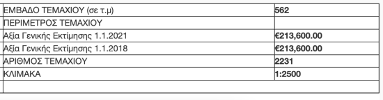 Η τελευταία εκτίμηση του Κτηματολογίου για το οικόπεδο είναι στις 213.000
