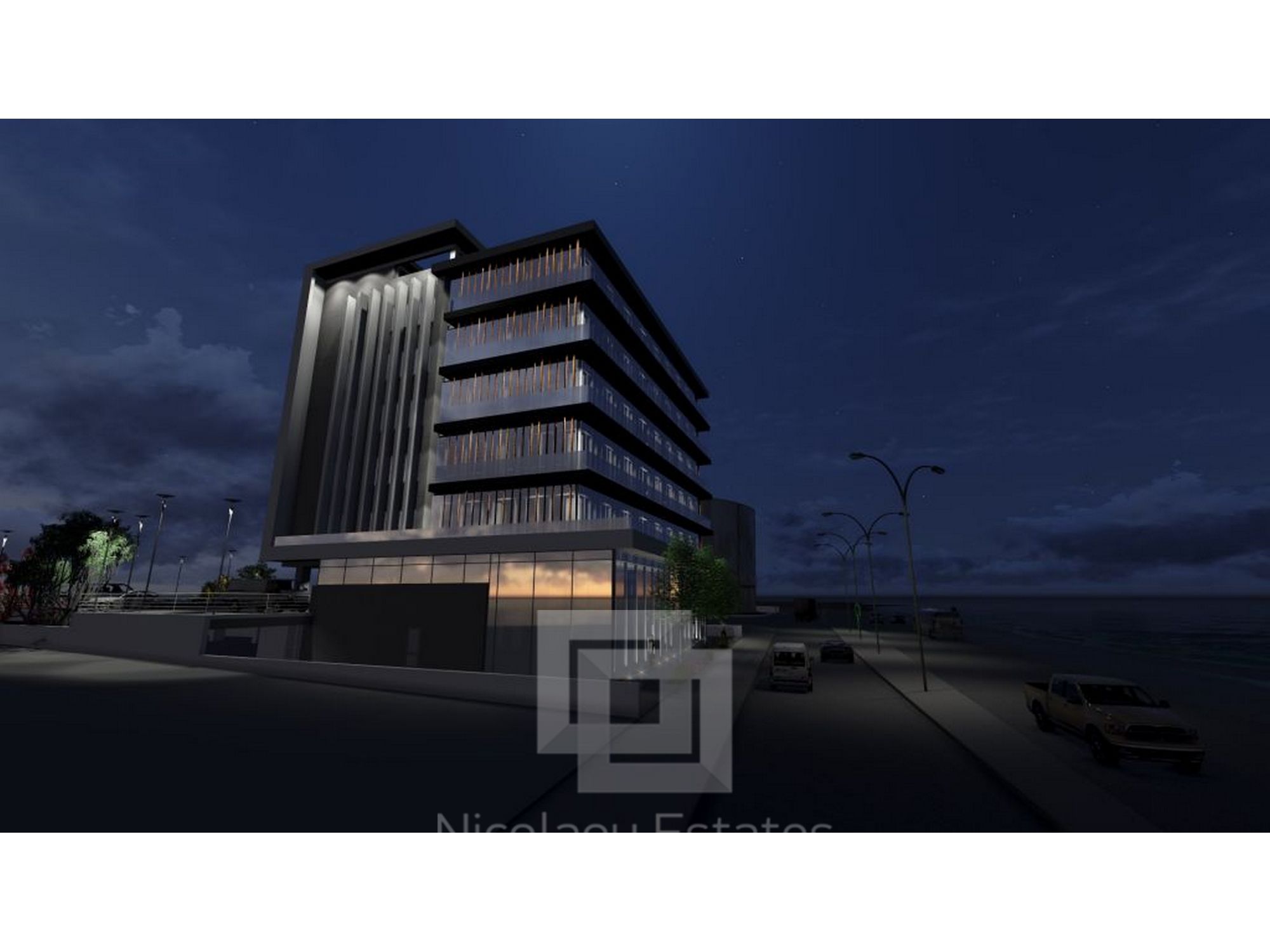 This new project consists of offices and shops situated at the seafront of Limassol. The building has private entrance, uncovered and underground parking places.
