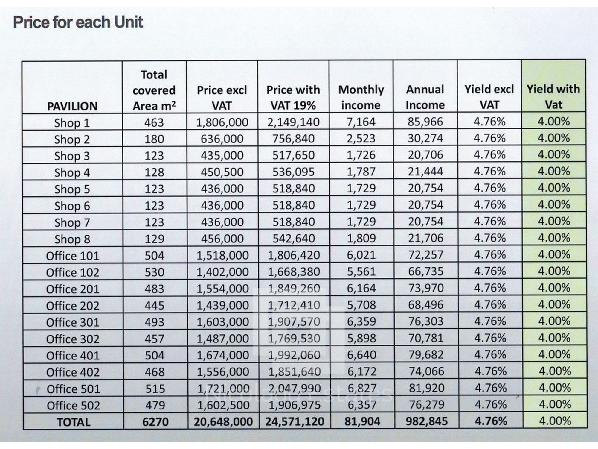 VAT 19% is not included in the price. However, if the offices are used for own purposes, then VAT can be claimed.