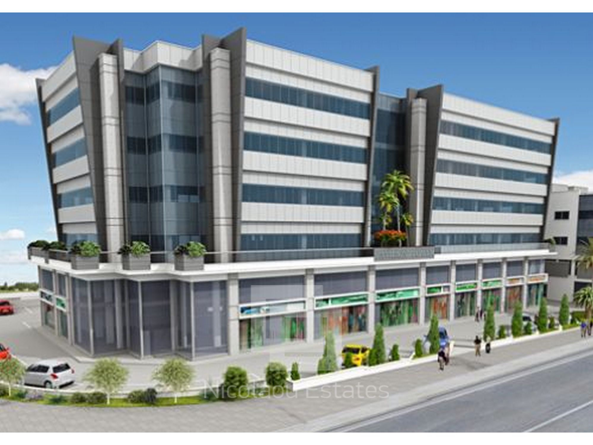 Completed. This exceptional tower it is constructed with the latest high-quality materials and has a unique design with glass panels all round its exterior. The building it's located on both the front sides of the plot on Arch. Makarios III Avenue and on Omonias Avenue. It consist of 8 shops on the ground floor with mezzanine levels, 8 offices on 4 floors (two on each floor) and 111 parking spaces - 54 in the basement and 57 on the ground floor.
